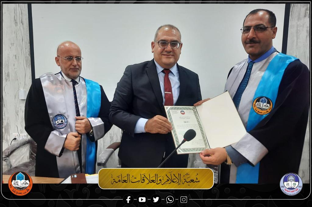 The College of Political Science at the University of Mosul discussed the master’s thesis tagged (international cooperation and the mechanisms of the World Health Organization to combat the Corona pandemic) on Wednesday, October 26, 2022 in the conference and symposium hall at the College of Political Science, and in the presence of Assistant Professor Dr. Tariq Mohammed Tayeb Zahir Dean of the College of Political Science, As well as a number of professors and graduate students in our college.The study presented by the student (Mohammed Abdullah Talib Taha) dealt with the idea of international cooperation, which is one of the main pillars of international relations. All countries should join hands to reach high levels of maintaining their health security in particular. Humanity in many countries of the world has faced threats and challenges affecting its health security, which is an essential part of its national security, and these threats were represented by the emergence of diseases and pandemics.The study touched on the state of weakness and impotence faced by the local and international health systems towards this pandemic, which required high regional and international cooperation to ward off its danger. Although its procedures did not rise to the required level, especially with the emergence of the Corona pandemic and its impact in all areas of life, and this is what made the impact of the pandemic continuous, reaching the limits of its spread in most countries of the world, and many concepts of international relations changed as a result.The study aimed to shed light on the future of the global system after the pandemic, which was marred by a lot of ambiguity, either due to the continued leadership of the United States of America to the world or the Chinese-American competition to lead the global system, so it can be said that a multipolar system will be the main controller in the world.The thesis discussion committee consisted of the professors whose names are listed below: 1- Prof. Dr. Khader Abbas Atwan… Chairman. 2- Prof. Dr. Imad Khalil Ibrahim… as a member 3- Assistant Professor Dr. Dameer Abdel Razzaq Mahmoud… as a member. 4- Assistant Professor Dr. Ahmed Tariq Yassin .. member and supervisor.After an extensive scientific discussion of the thesis and the student’s defense of it, it was approved and qualified to obtain a master’s degree in political science. At the conclusion of the discussion of the thesis, Assistant Professor Dr. Tariq Mohammed Tayeb Zahir, Dean of the College of Political Sciences, granted a letter of thanks and appreciation to Professor Dr. Khader Abbas Atwan, one of the teachers of Al-Nahrain University / College of Political Sciences, for taking the trouble of traveling to Nineveh and for his distinguished scientific contribution in chairing the thesis discussion committee.