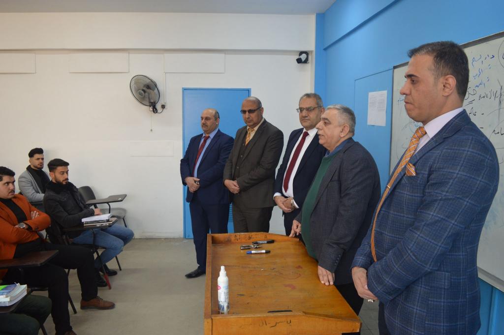 Coinciding with the start of the academic year for first-year students in the College of Political Science, Prof. Dr. Munir Salim Taha, Assistant President of the University for Scientific Affairs, and a number of deans of colleges in the second complex visited the College of Political Science on Tuesday, 12/28/2021. The distinguished visitors were received by Dr. Tariq Mohamed Tayeb Thaher, Dean of the Faculty of Political Science. Who escorted them to the classrooms of the first-year students. Where Dr. Munir Salem Taha welcomed the new students at the University of Mosul, and instructed them to always attend and attend lectures, adhere to university instructions and guidelines, preserve the property and furniture of classrooms, and raise the scientific and moral level of students in line with the position of Mosul University and its role in society.