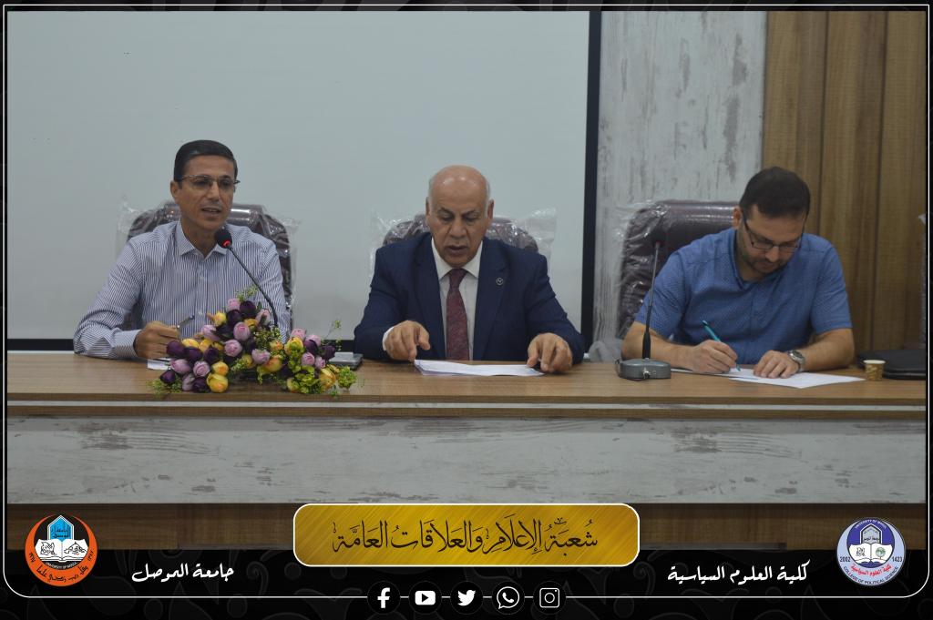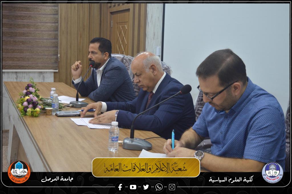Under the patronage of Dr. Tariq Mohammed Tayeb Zahir Dean of the College of Political Science, and in cooperation with the Continuing Education Unit, the College of Political Science held a scientific workshop on the occasion of the Iraqi National Day on Sunday, October 9, 2022.The workshop was attended by Prof. Dr. Waheed Mahmoud Ramo Al-Ibrahimi, Rector Assistant for Administrative Affairs, Major General Abdul-Khaleq Al-Khikani Director of the Joint Center for Security and Intelligence in Nineveh, and a number of deans, members of the University of Mosul Council. And a number of professors, researchers and graduate students.The two sessions of the workshop witnessed a review of the Iraqi memory, starting from the founding of the Iraqi state in 1921 to the present day, which embodied the stages of the Iraqi national struggle to get rid of colonial control, and the stages of Iraq’s growing political and economic role in international forums and organizations under the League of Nations and the United Nations. They also talked about the most important challenges facing the path of the Iraqi political process at the present time, as well as identifying effective means and mechanisms to ensure the return of Iraq’s leading role in the Arab world and globally. At the conclusion of the workshop, the discussion and commentary was opened for the attendees in order to enrich the topics that were raised during the two sessions of the workshop.