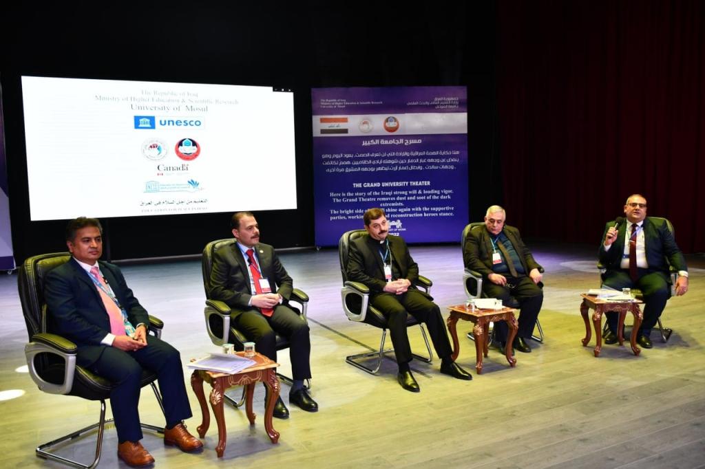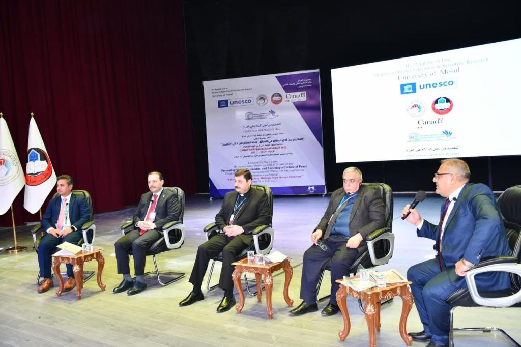 The College of Political Science participated in the ceremony of the University of Mosul obtaining a UNESCO chair under the auspices of His Excellency the Minister of Higher Education and Scientific Research Dr. Naim Al-Aboudi and under the supervision and presence of Prof. Dr.Kossay Kamal Al-Din Al-Ahmady the President of the University of Mosul through the active participation of the college’s teachers through the membership of the Dean of the College, Assistant Professor Dr. Tariq Mohammad Tayeb Zahir in the UNESCO chair and the participation of the college’s professors in the scientific and coordinating committees within the activities of the international conference marked (Education for Peace in Iraq – Building Peace through Education) in cooperation with UNESCO in Iraq and under the title (Rejecting Violent Extremism and Promoting a Culture of Peace) for the period from 28-30 October the second 2022.The conference aimed to formally announce the establishment of a UNESCO Chair at the University of Mosul, entitled “Rejecting Violent Extremism and Promoting a Culture of Peace.” It brought together specialists and interested people who work in the field of education for peace and stability and rejecting violent extremism through education in Iraq, as well as deepening positive feelings, increasing solidarity and opportunities for coexistence to confront All forms of violent extremism.The first dialogue session, which was held on the stage of the university’s grand theatre, was moderated by Prof. Dr. Tariq Mohammad Tayeb Al-Qassar Dean of the College of Political Sciences, member of the UNESCO Chair Committee at the University of Mosul, during which he hosted the Assistant President of the University for Scientific Affairs, Professor Dr. Munir Salem Taha, Member of the UNESCO Chair Committee, and Mr. Santosh Khatri, Director of Education, UNESCO Iraq, as well as Judge Raed Hamid Hussein, President of the Court of Appeal of Nineveh, and Father Raed Emmanuel Adel, dealt with topics on the role of education in building peace and the foundations and status of education for peace in Iraq.