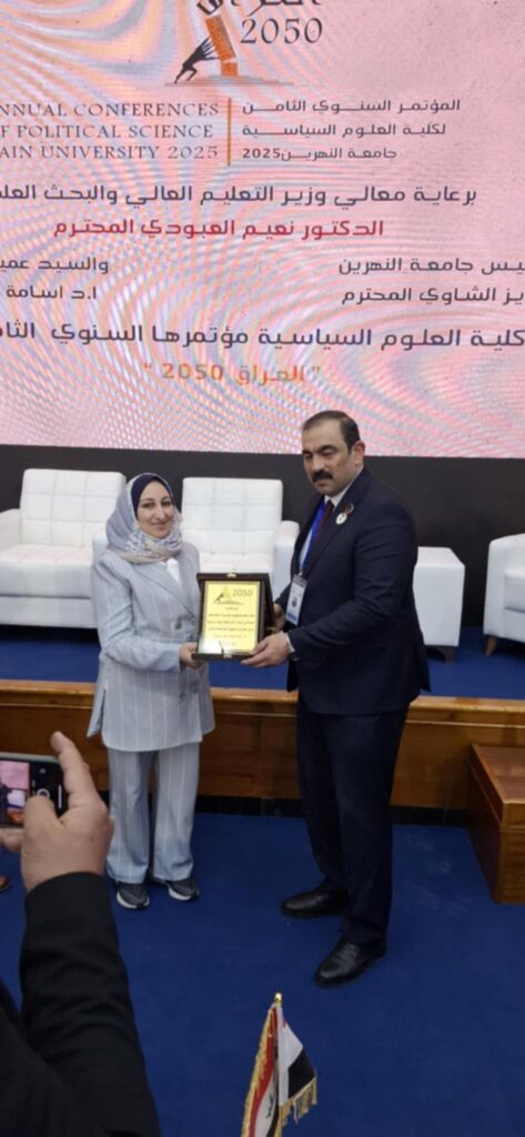 Two faculty members from the College of Political Science at the University of Mosul participated in a scientific conference at Al-Nahrain University on “Iraq in 2050.”