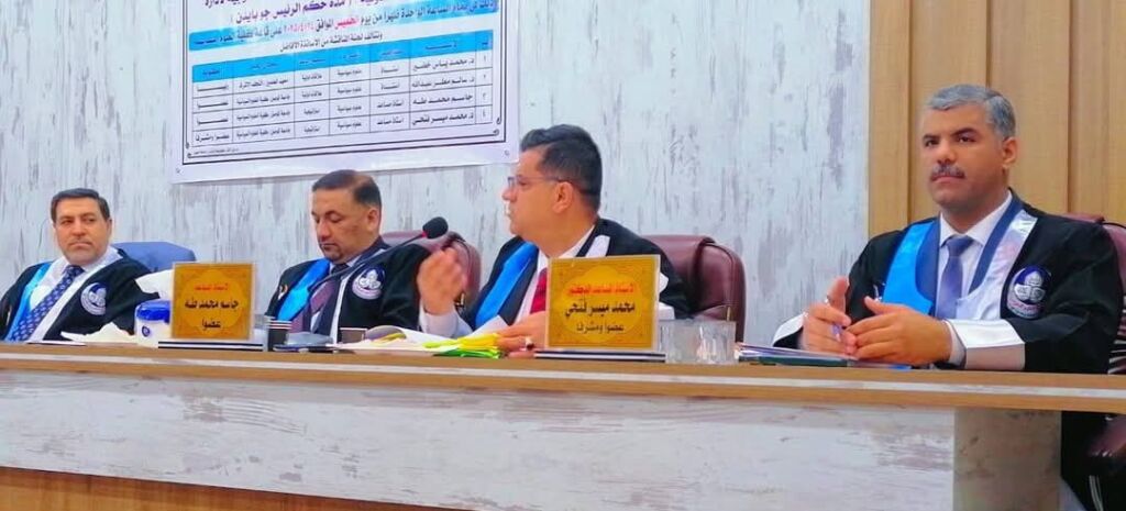 The examination committee consisted of Prof. Dr. Mohammed Yas Khudair (Chair), Prof. Dr. Salim Matar Abdullah (Member), Asst. Prof. Jasim Mohammed Taha (Member), and Asst. Prof. Dr. Mohammed Maysar Fathi (Member and Supervisor).