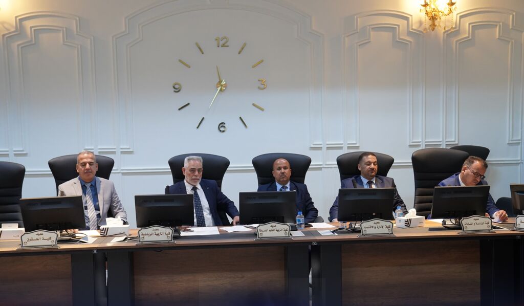 The College of Political Science at the University of Mosul hosted the meeting of the Committee of Deans of Colleges of Political Science in Iraqi Universities on Thursday, 24 April 2025. The meeting was chaired by Professor Dr. Adel Al-Badawi, and attended by the University’s Assistant President for Administrative and Financial Affairs, Assistant Professor Dr. Rafal Hasan Hamed, and the Dean of the College of Political Science at the University of Mosul, Assistant Professor Dr. Sohaib Khalid Jasem Al-Taie, along with other committee members.