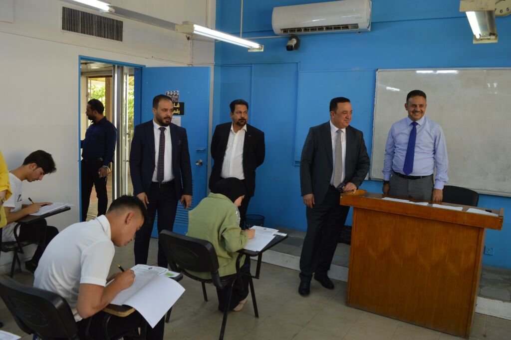 Final examinations commenced at the College of Political Science, University of Mosul, for first-year students of the academic year 2024–2025 on Sunday, 1 June 2025. The Dean of the College, Assistant Professor Dr. Suhaib Khalid Jassim Al-Tai, conducted an inspection tour of the examination halls, accompanied by the Assistant Dean for Scientific Affairs, Assistant Professor Dr. Khairallah Subhan Al-Jubouri, and the heads of the two academic departments.