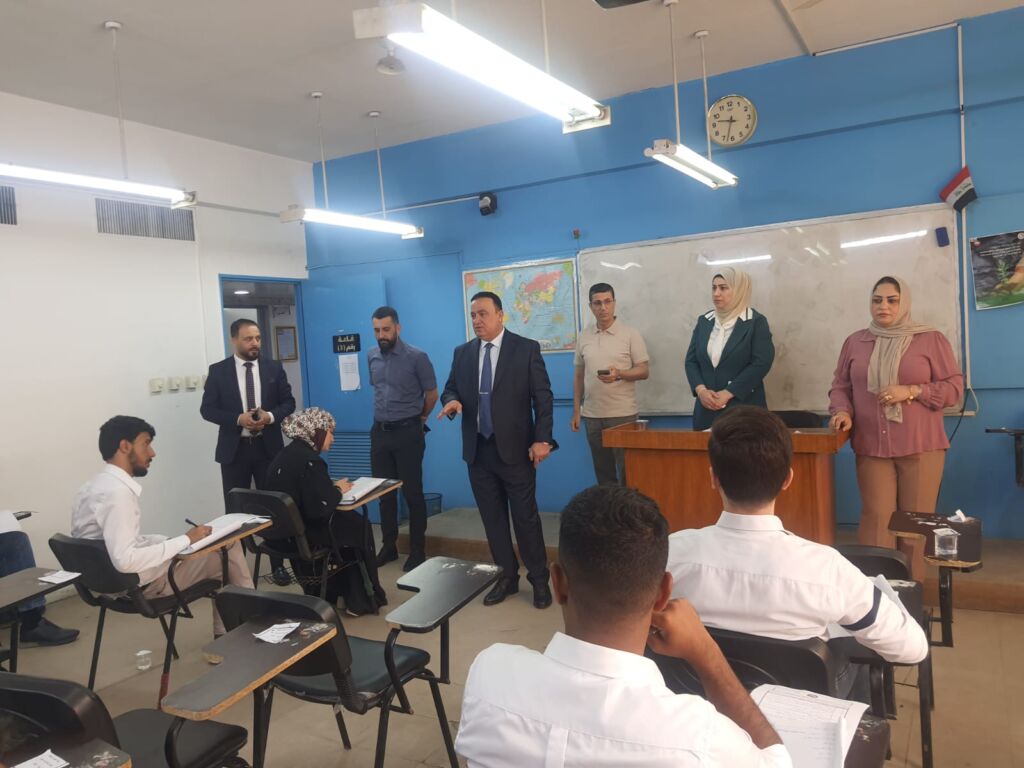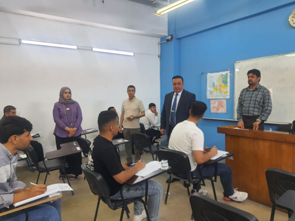 The Dean of the College, Assistant Professor Dr. Suhaib Khalid Jassim Al-Tai, accompanied by members of the College Council, conducted inspection tours of the examination halls, where the exams have been proceeding with high levels of order and smoothness, without any noteworthy obstacles.