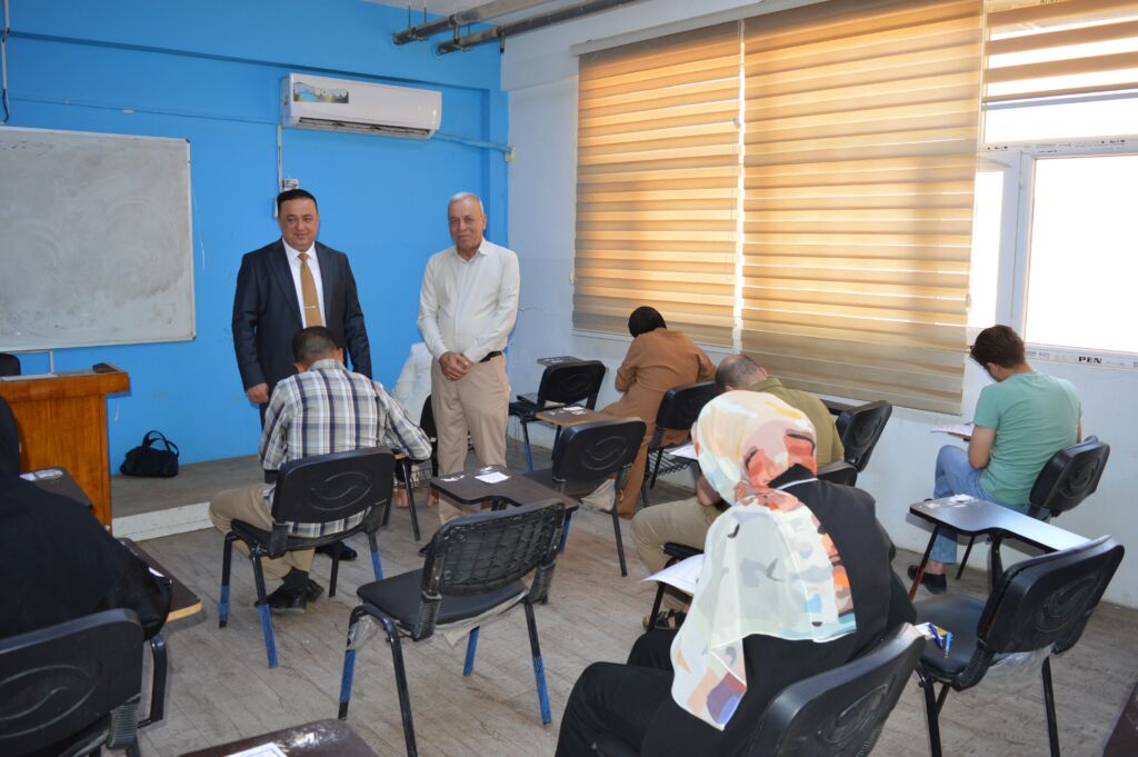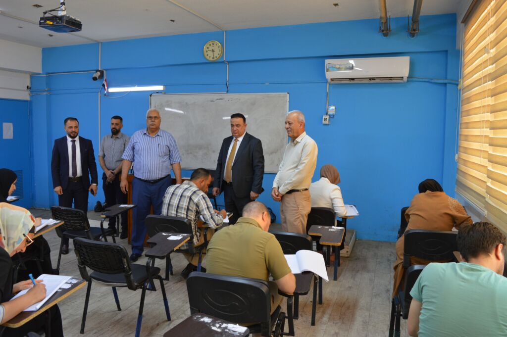 The Dean of the College, Assistant Professor Dr. Suhaib Khalid Jasem Al-Taie, accompanied by some members of the College Council, conducted an inspection tour of the examination hall.