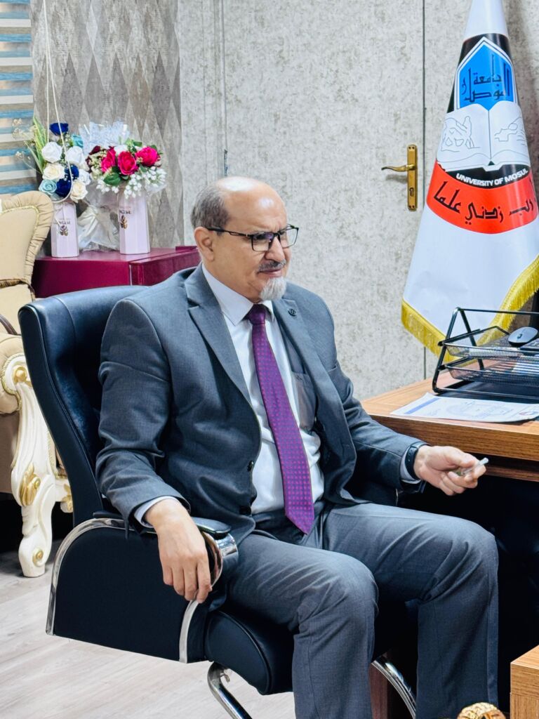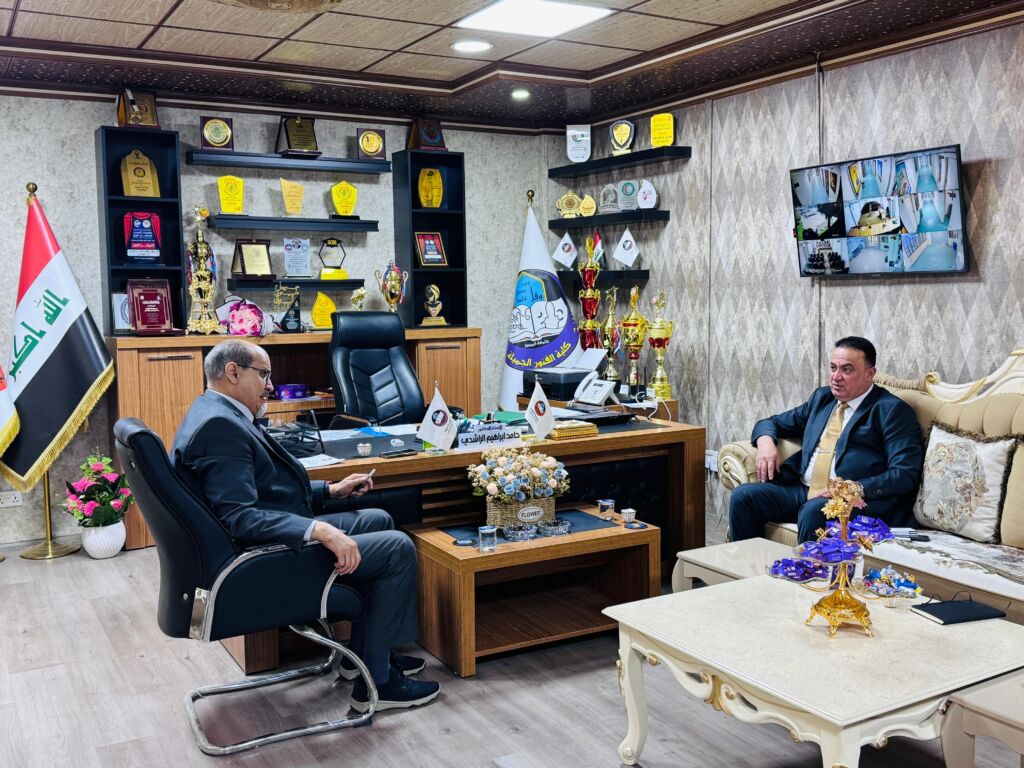 In line with the Sustainable Development Goals—Goal 4: Quality Education, Goal 16: Peace, Justice, and Strong Institutions, and Goal 17: Partnerships for the Goals—the Dean of the College of Political Science at the University of Mosul, Assistant Professor Dr. Sohaib Khalid Jassim Al-Taie, paid a visit to the College of Fine Arts on Monday, 11 August 2025. He was received by the Dean of the College of Fine Arts, Professor Dr. Hamid Ibrahim Al-Rashidi.