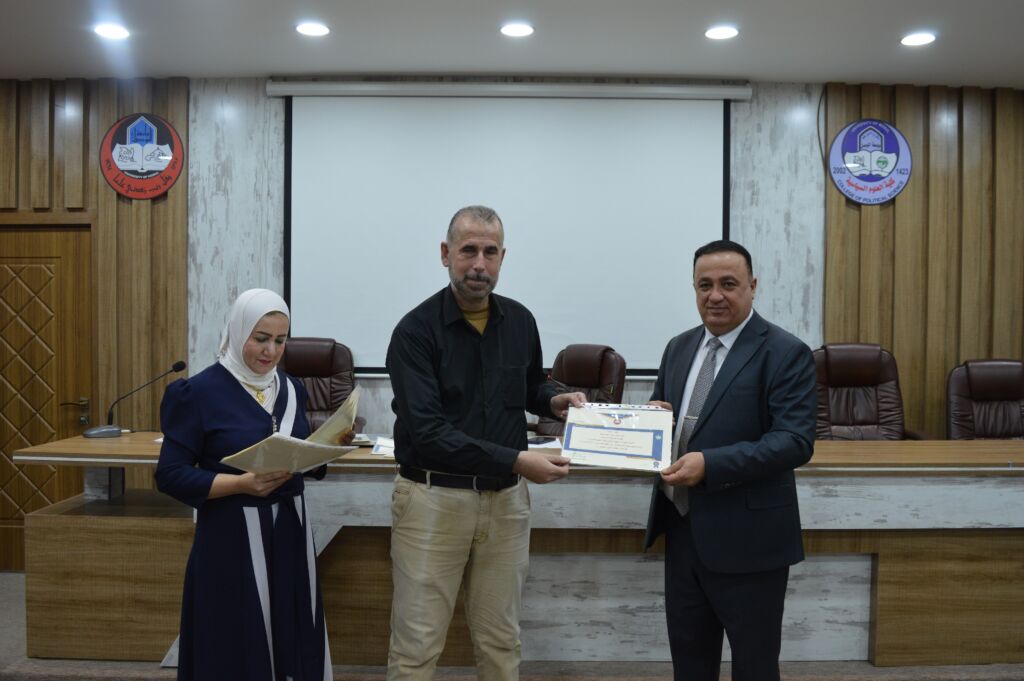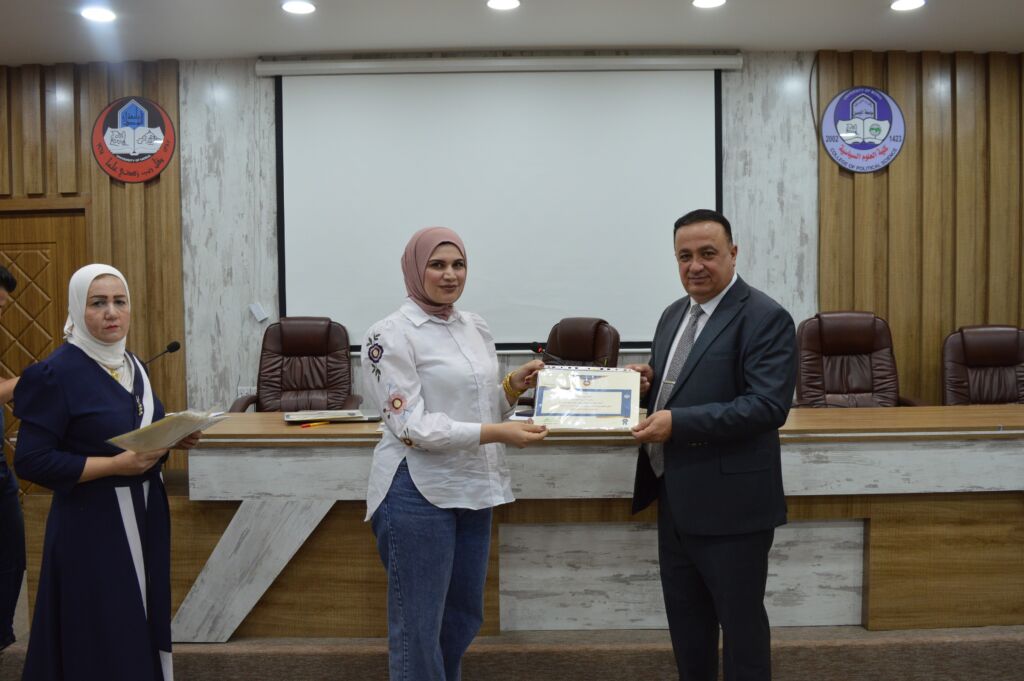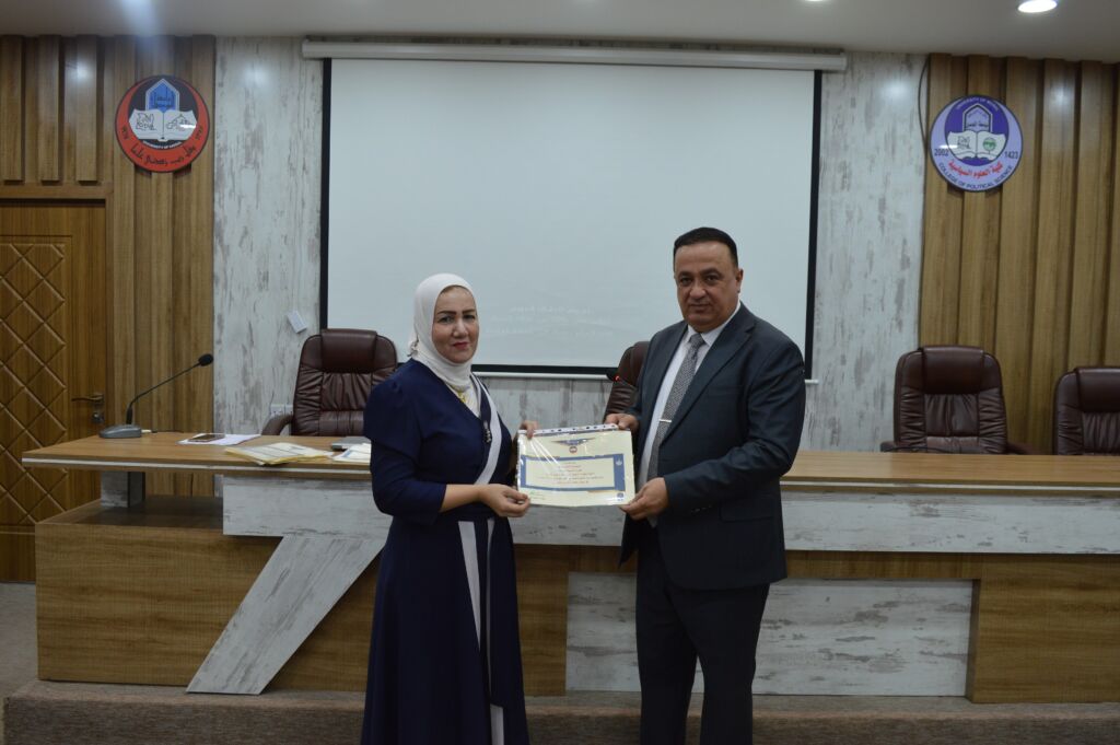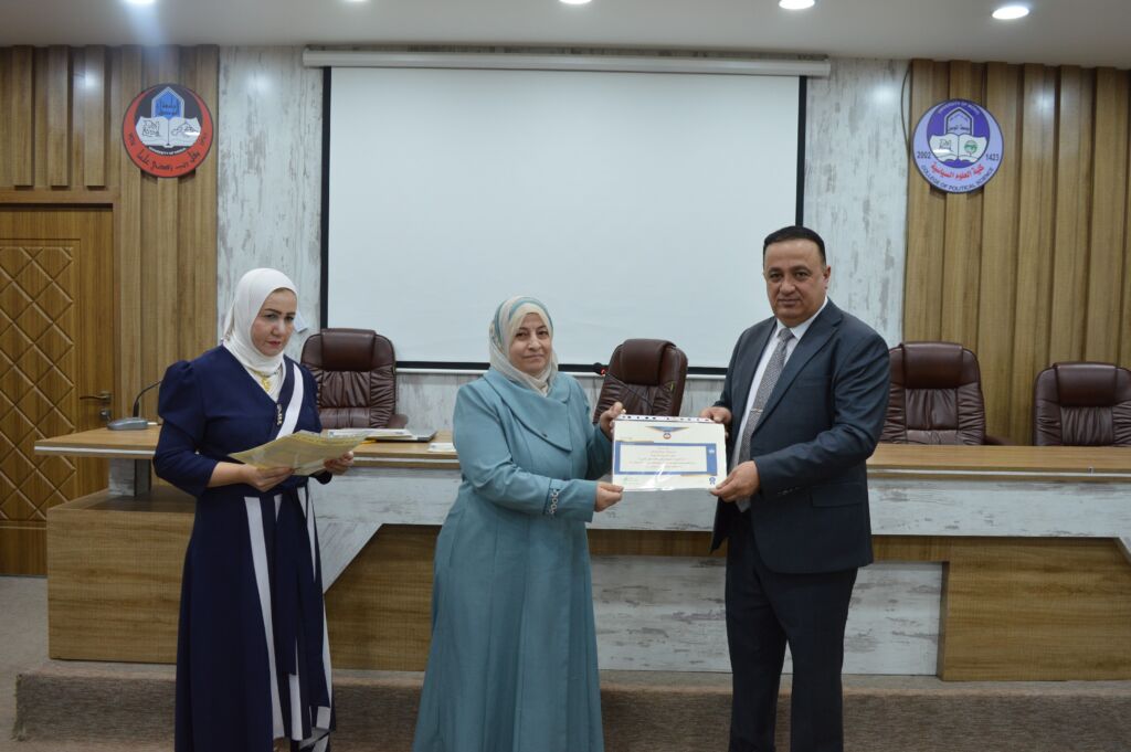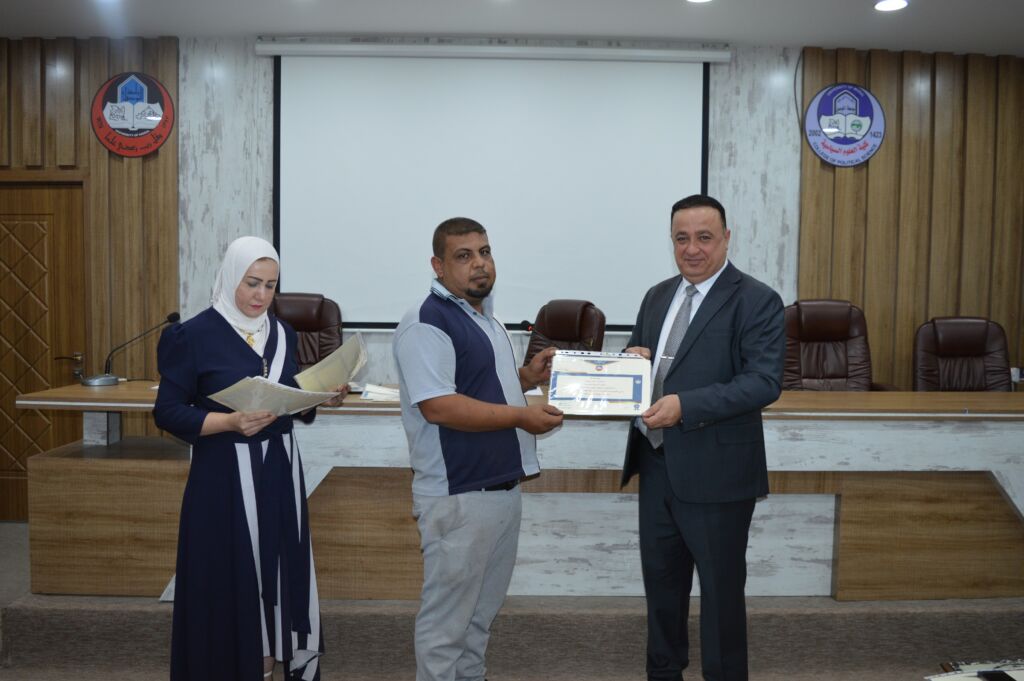 Following the lectures, the Dean of the College, Asst. Prof. Dr. Suhaib Khalid Jasim al-Tai, extended sincere thanks and appreciation to the Head of the Continuing Education Unit, Mrs. Rana Fadel Ahmed, for her dedicated efforts in organizing the course. He also thanked the participating lecturers and concluded by distributing certificates of participation to the attendees.