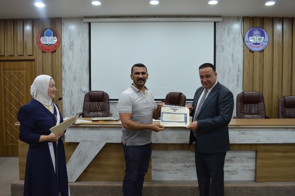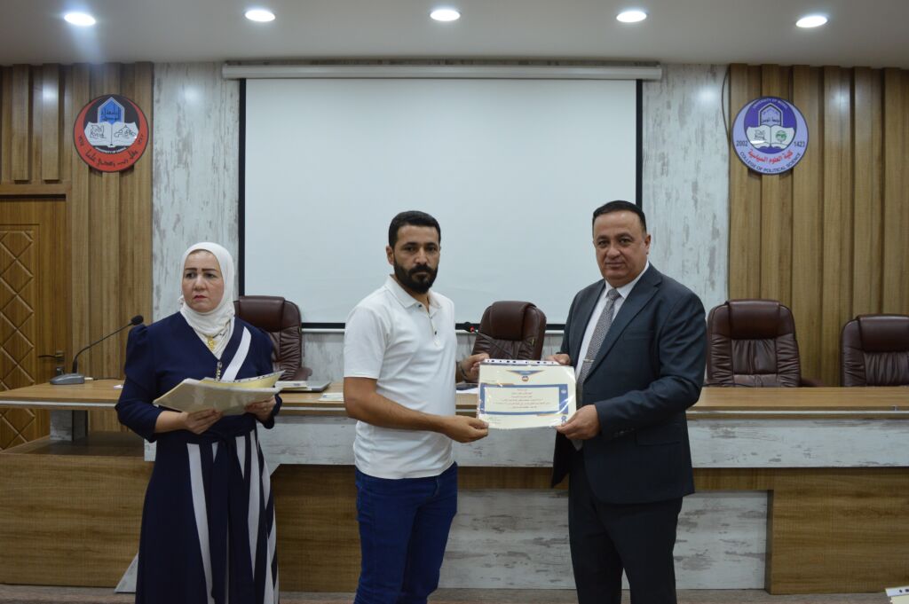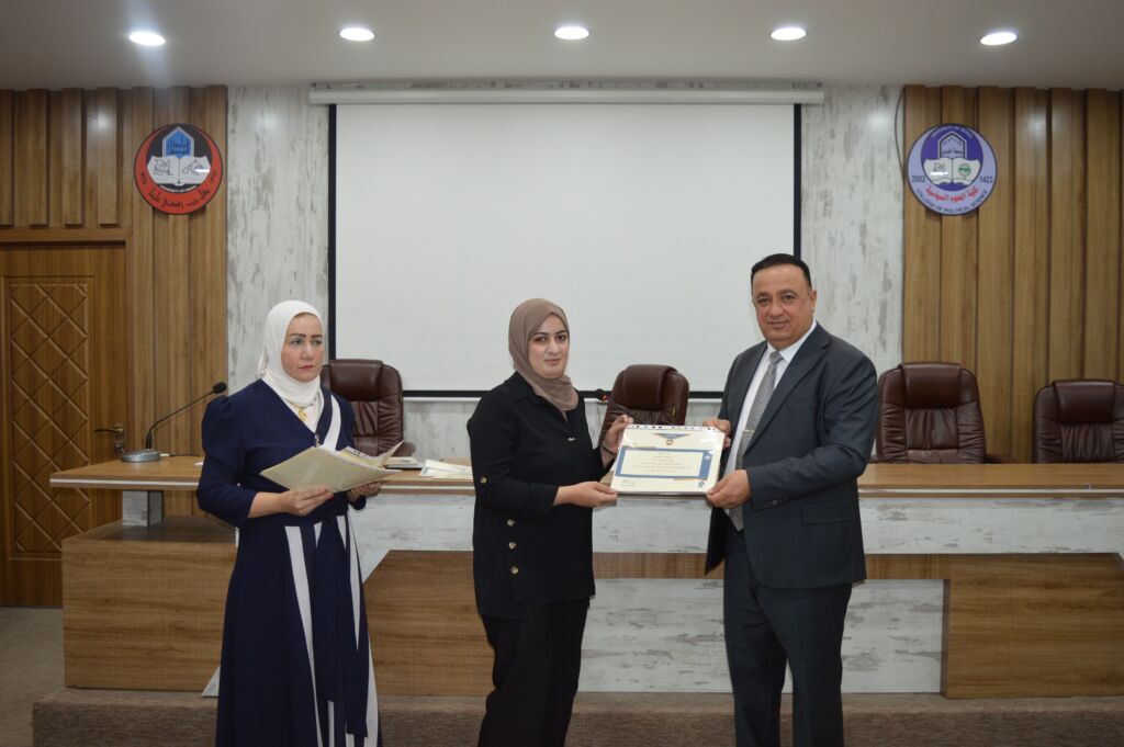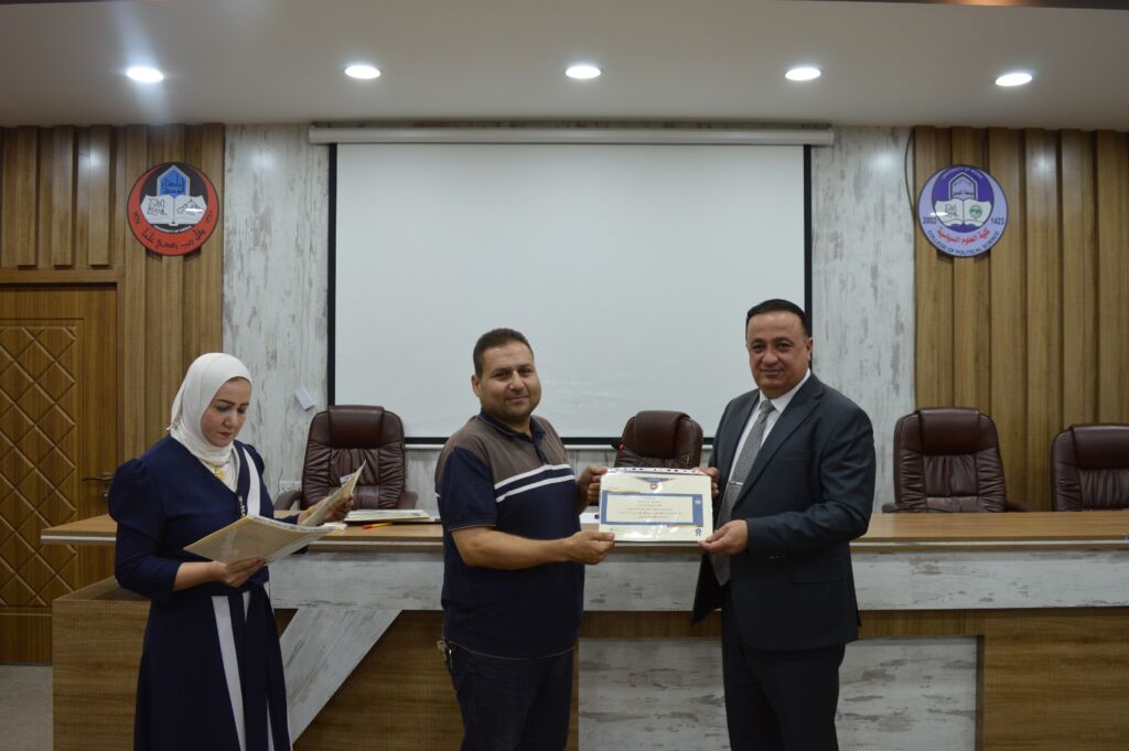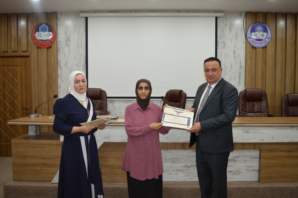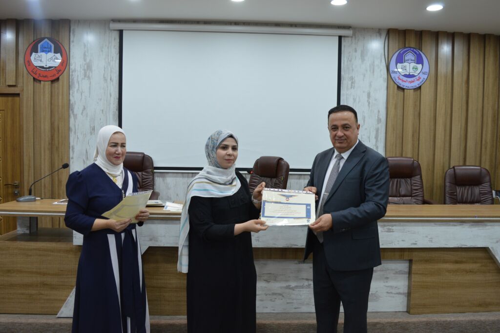 Following the lectures, the Dean of the College, Asst. Prof. Dr. Suhaib Khalid Jasim al-Tai, extended sincere thanks and appreciation to the Head of the Continuing Education Unit, Mrs. Rana Fadel Ahmed, for her dedicated efforts in organizing the course. He also thanked the participating lecturers and concluded by distributing certificates of participation to the attendees.