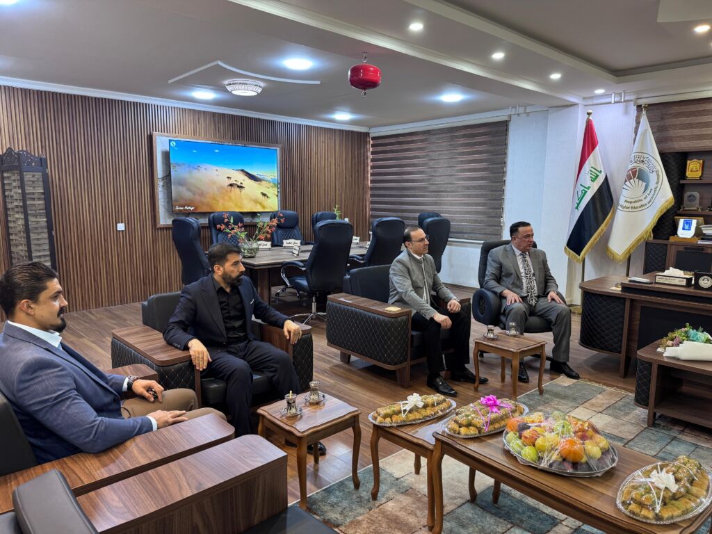 In line with the Sustainable Development Goals, Goal Four: Quality Education, Goal Sixteen: Peace, Justice and Strong Institutions, and Goal Seventeen: Partnerships for the Goals; the Scientific and Administrative Assistants of the University of Mosul, Professor Dr. Abdulrahim Ibrahim Jasim and Assistant Professor Dr. Rafal Hassan Hamed, paid a visit to the College of Political Science on Thursday, 11 September 2025. They were received by the Dean of the College, Assistant Professor Dr. Sohaib Khalid Jasim Al-Taie. The same day also witnessed a visit by a number of members of the University Council (college deans) and others.