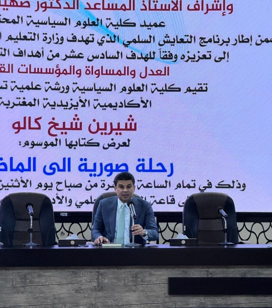 In line with the United Nations Sustainable Development Goal 16: Peace, Justice, and Strong Institutions, the College of Political Science at the University of Mosul organized its scientific workshop that included the presentation of the book “A Visual Journey to the Past” by researcher Shirin Sheikh Kalo, on Monday, October 20, 2025.