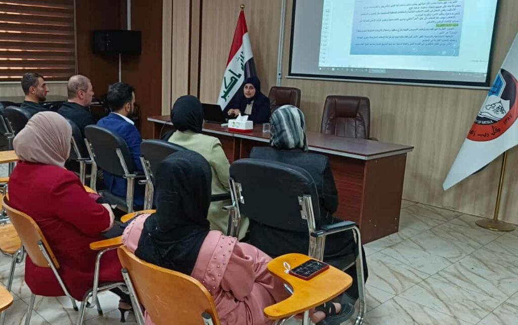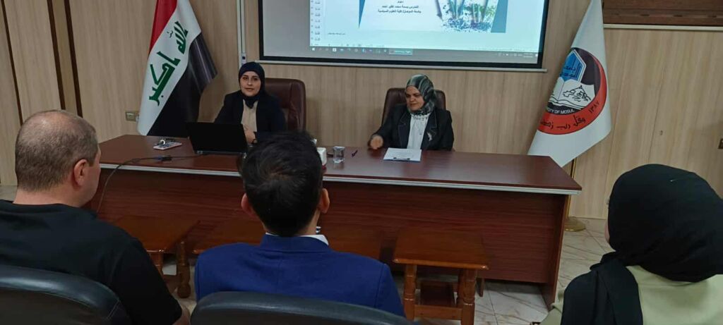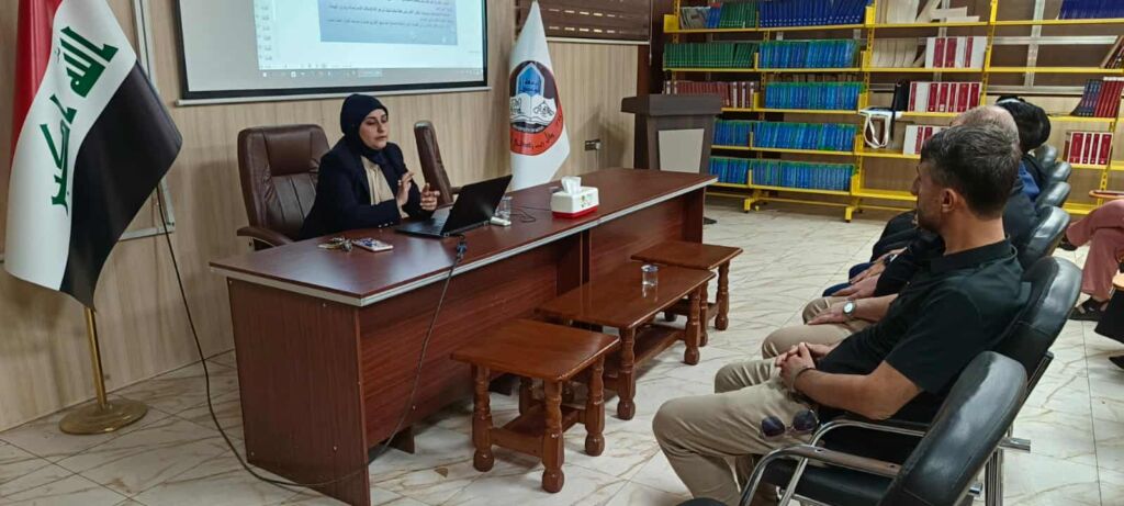 A faculty member from the College of Political Science at the University of Mosul, Lecturer Basma Mohammed Nadhir, delivered a lecture titled “Building Intellectual Immunity” during a workshop organized by the Central Library