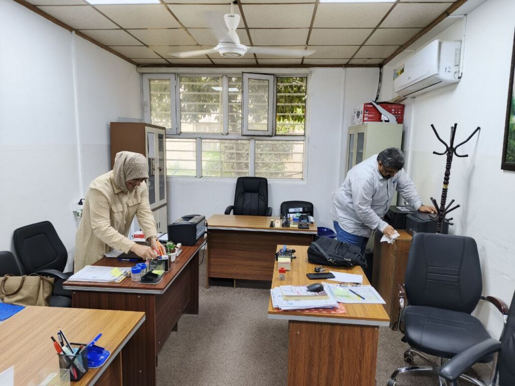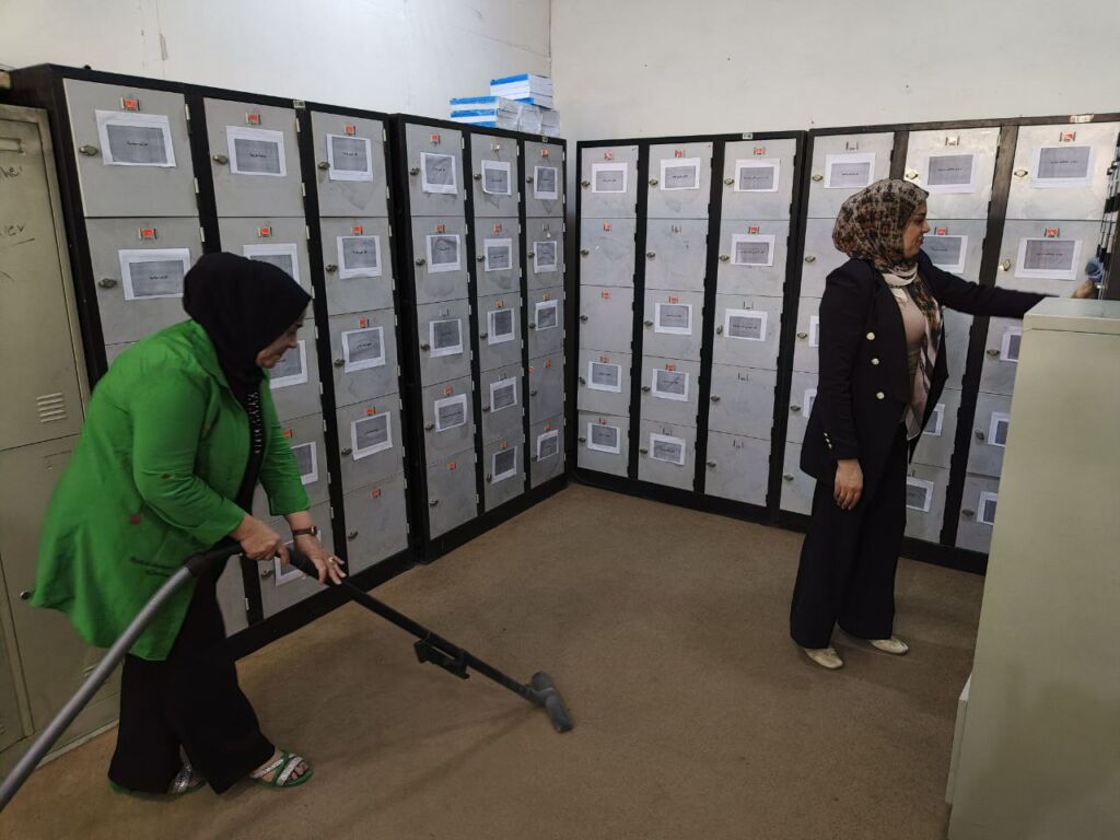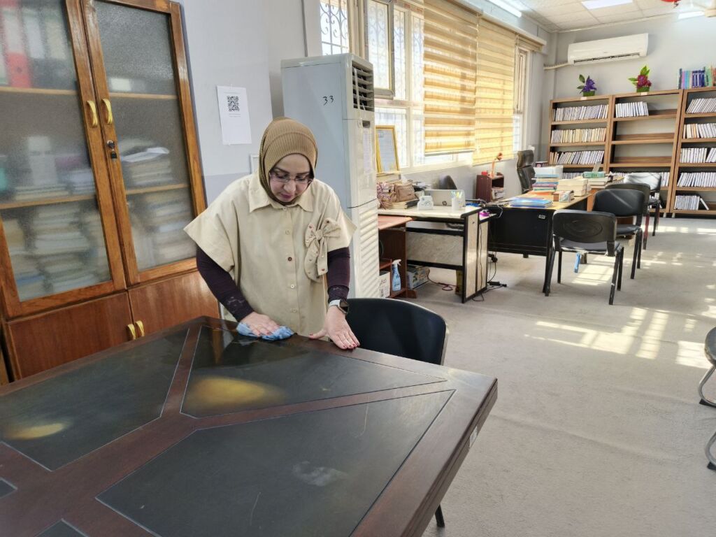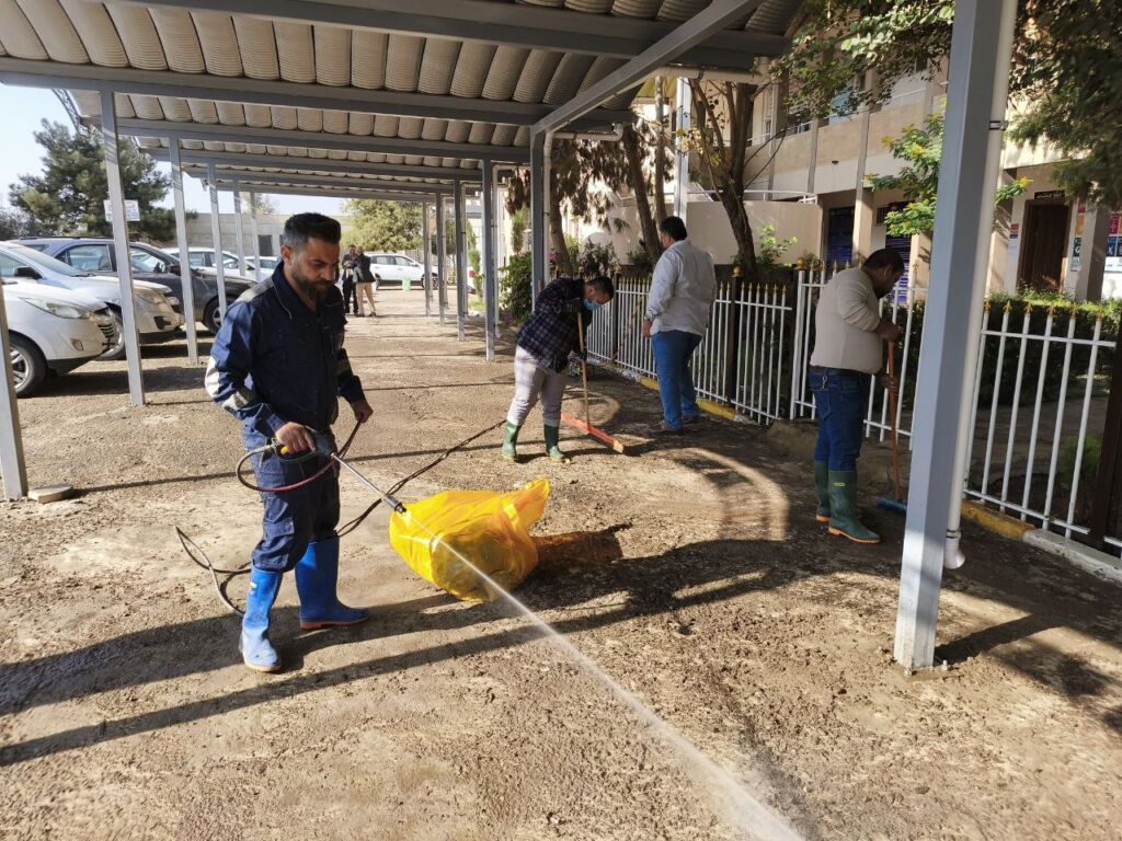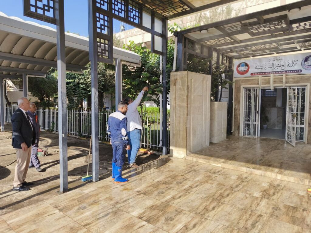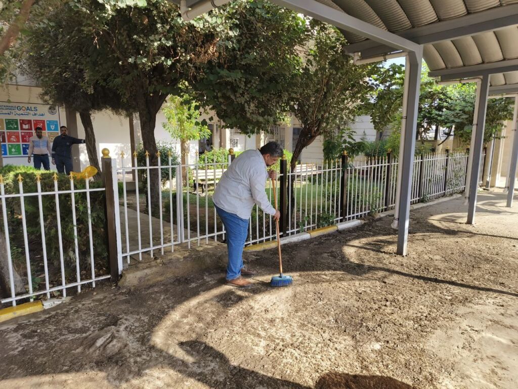 The campaign covered all corridors, courtyards, gates, entrances, and facilities of the college, beginning with the two academic departments, passing through all scientific and administrative units and divisions, and concluding with the external parking area and the front entrance of the Dean’s Office. The campaign also included cleaning and maintaining the gardens.
