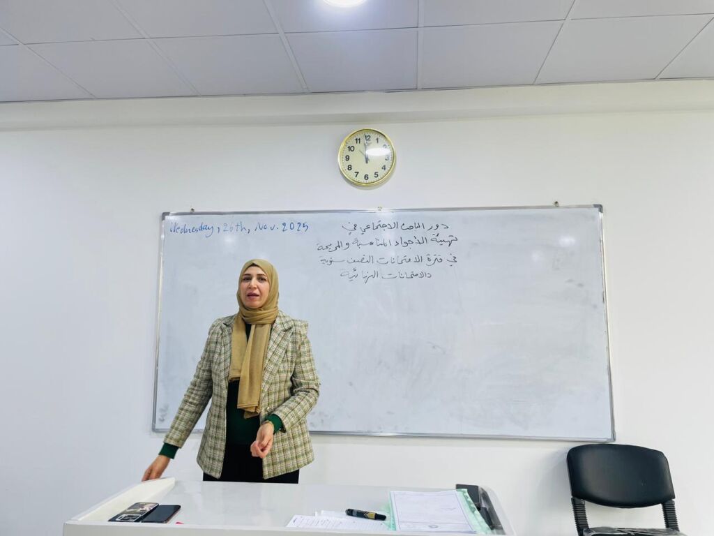 The lecture aimed to enhance students’ awareness of mechanisms for coping with exam anxiety and to develop psychological adaptation skills during examination periods. This was achieved by highlighting the role of the social researcher in providing a supportive and well-prepared environment that helps students achieve better academic performance and reduce psychological pressures associated with the difficulty of academic courses.