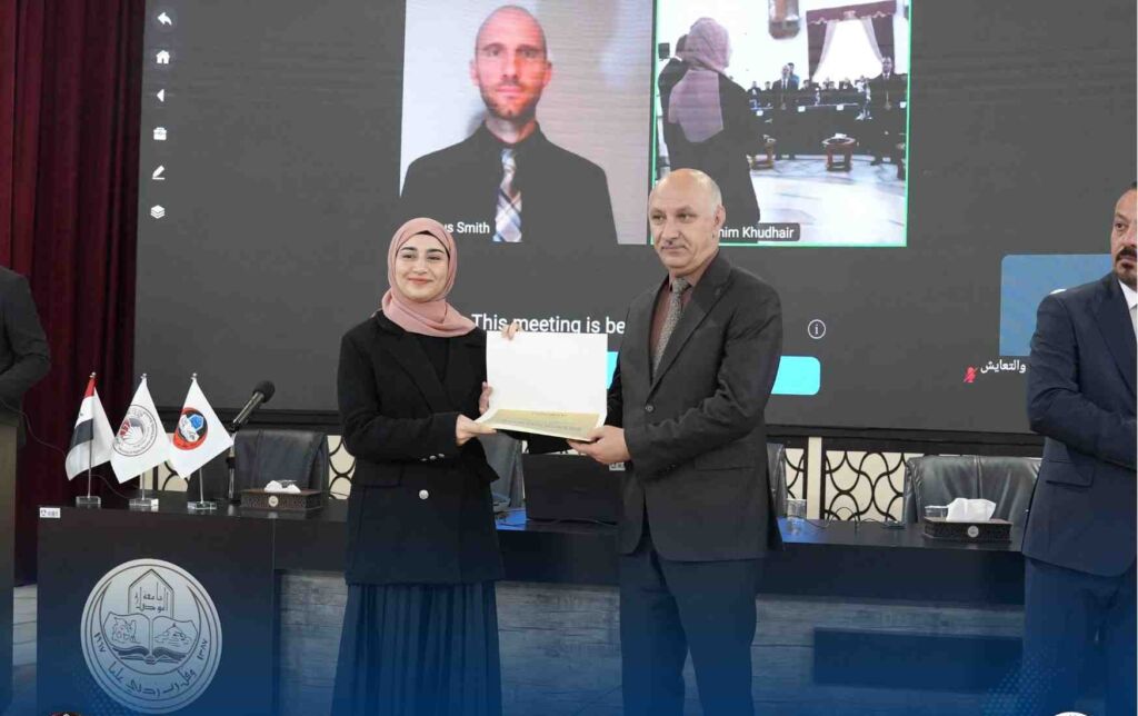 The ceremony featured the participation of Dr. Marcus Smith, the general coordinator of the program, representing Lindenwood University through live online communication. The event comes as a culmination of the students’ efforts in the joint academic program, which provides them with opportunities to engage with international experiences, interact with advanced educational environments, and enhance their research skills and scientific capabilities in line with the University of Mosul’s vision for building effective global partnerships.