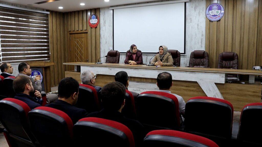 In line with the Sustainable Development Goals—Goal 5: Gender Equality, Goal 16: Peace, Justice and Strong Institutions, and Goal 17: Partnerships for the Goals—and in cooperation with the Department of Studies and Planning / Sustainable Development Unit (University of Mosul Presidency) and the Continuing Education Unit (College of Political Science), the Women’s Affairs Committee hosted Iraqi Member of Parliament, Assistant Lecturer Sumaya Ghanem Al-Khabouri, who delivered a lecture entitled “The Participation of Mosuli Women in Political Life: A Success Story” on Sunday, 14 December 2025. The session was chaired by the committee head, Assistant Professor Dr. Maha Ahmed Ibrahim.