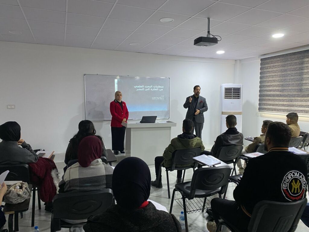 The workshop aimed to introduce the fundamentals and components of sound scientific research, highlighting the methodological stages of research preparation, starting from selecting the idea and formulating the research problem, passing through defining objectives and hypotheses and choosing the appropriate scientific methodology, and concluding with proper scientific documentation methods and the requirements for publishing research in reputable scientific journals. This contributes to developing research skills and enhancing academic capabilities in accordance with approved scientific standards.