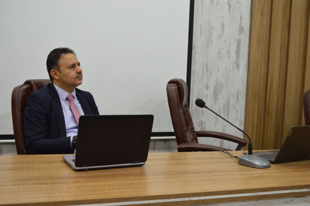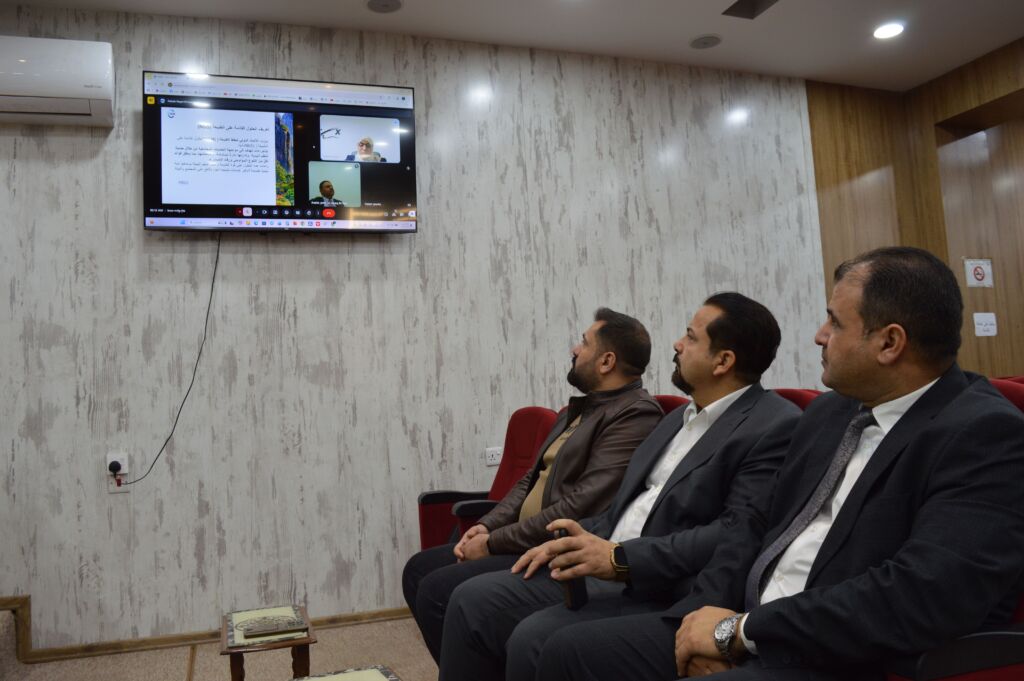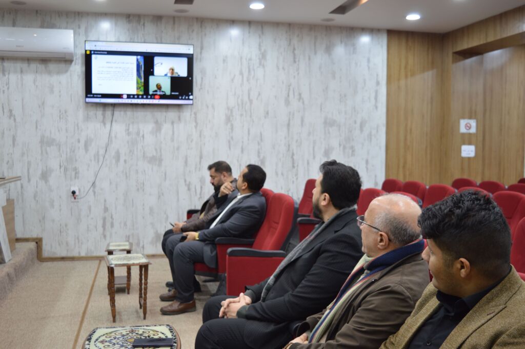 The lecture was held virtually under the supervision of the College Dean. Part of it was attended by the Administrative Assistant, Associate Professor Dr. Ali Hussein Yassin. The session was chaired by the Head of the College’s Sustainable Development Committee, Associate Professor Dr. Tareq Mohammed Dhnoon, with Mr. Hasan Younis Abdullah, Senior Engineer, serving as rapporteur and head of the Media and Government Communication Division. Some members of the College Council and a number of faculty members also attended.