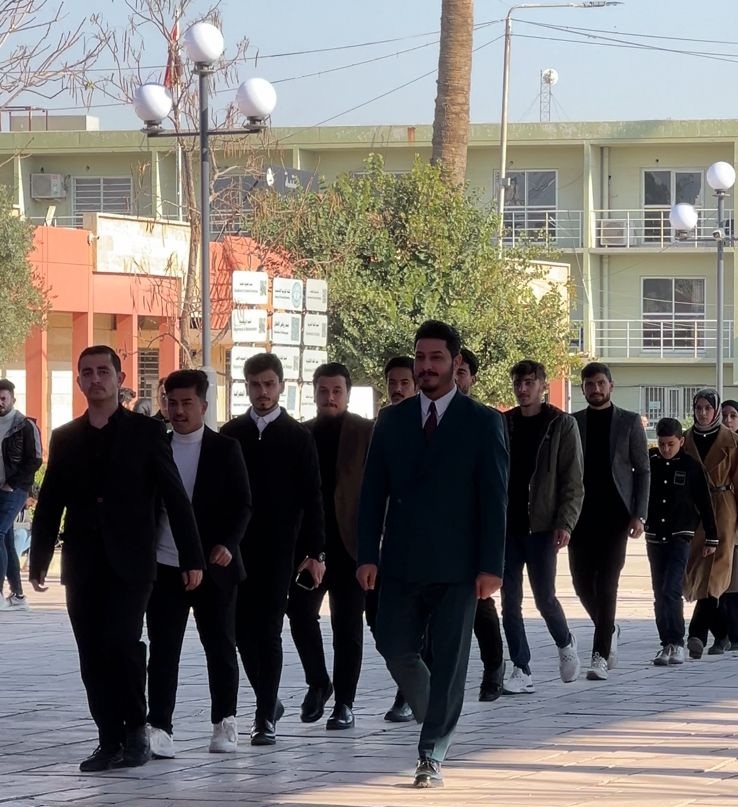 The ceremony began with the playing of the Iraqi national anthem, followed by the recitation of Surah Al-Fatiha in mercy for the souls of the martyrs, and then listening to verses from the Holy Qur’an. After that, the Dean of the College delivered an opening speech in which he emphasized the importance of providing a supportive and motivating university environment for students, which would undoubtedly contribute to refining their scientific and intellectual personalities. He also called on students to adhere to university regulations and instructions and to strive earnestly toward excellence and success. Subsequently, the floor was opened for artistic, literary, and creative contributions on various cultural and national themes, presented by a group of students.
