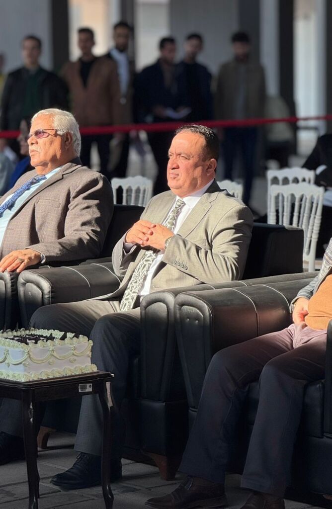 The ceremony was moderated by Mr. Laith Al-Jawadi (representing the organizing body) and Mr. Ihab Al-Kasser (representing the students). It was attended by several members of the College Council, a number of faculty members, in addition to the honored students, as well as dozens who gathered and celebrated in the courtyard of the university’s second campus.