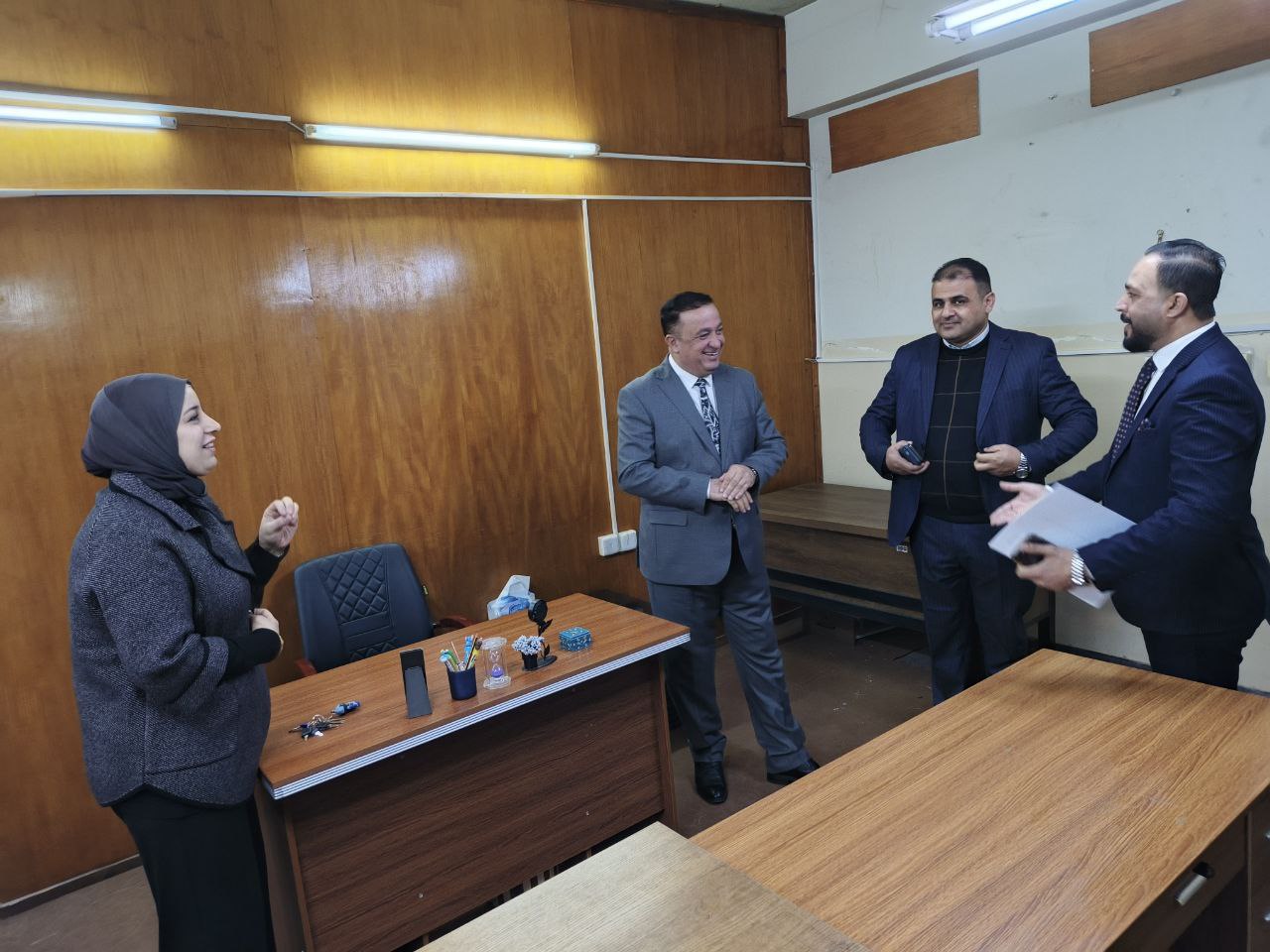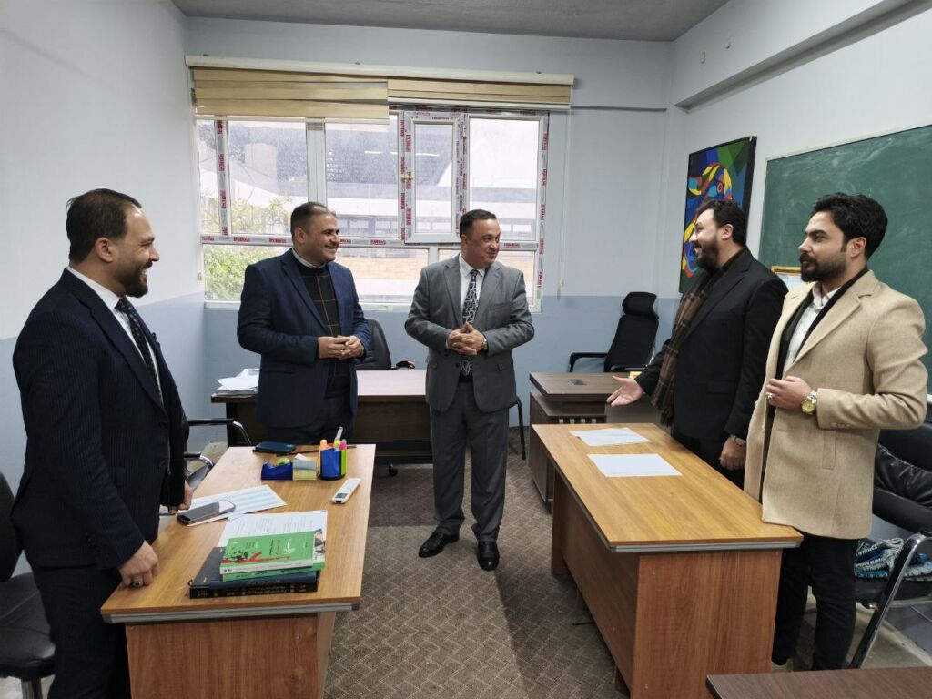 In pursuit of the Sustainable Development Goals, Goal Four: Quality Education, and Goal Sixteen: Peace, Justice, and Strong Institutions, and in cooperation with the Department of Studies and Planning/ Sustainable Development Unit (at the Presidency of the University of Mosul); the Dean of the College of Political Science, Assistant Professor Dr. Suhaib Khalid Jasim Al-Taie, accompanied by the Scientific and Administrative Assistants, Assistant Professor Dr. Khairallah Sabhan Al-Jubouri and Assistant Professor Dr. Ali Hussein Yassin, conducted an inspection tour of a number of scientific and administrative divisions and units on Sunday, 28 December 2025.