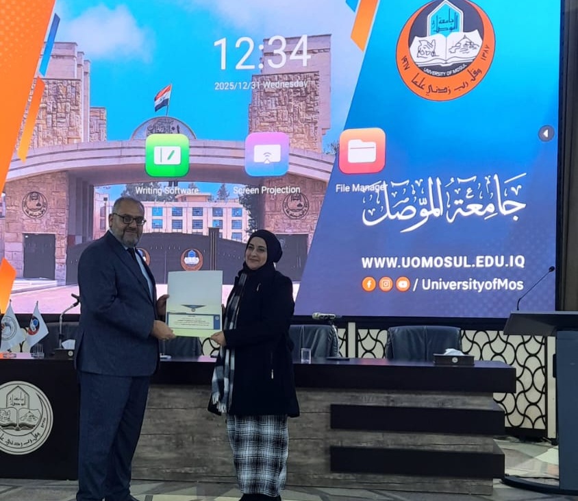 “Societal Intellectual Approaches and Their Impact on the Future of Fossil Fuels in Iraq: A Study in Analyzing Paragraph (28) of the Outcomes of the Conferences of the Parties.” In the second session, Lecturer Basma Mohammed Nadhir participated with her paper entitled: “Prospects for Regional Cooperation and Integration in Achieving Economic Sustainability in Iraq.”
