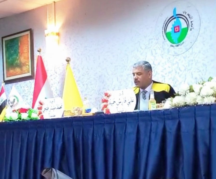 The defense committee was chaired by Professor Dr. Ali Faris Hameed, with the membership of a number of other faculty members, including Assistant Professor Dr. Mohammed Maysir Fathi, a faculty member of the Department of International Relations at the College of Political Science.