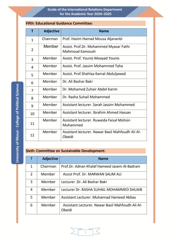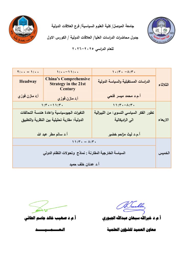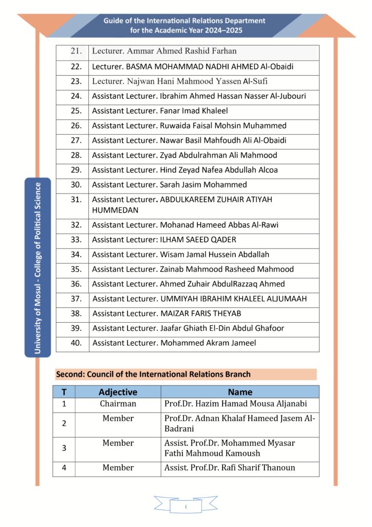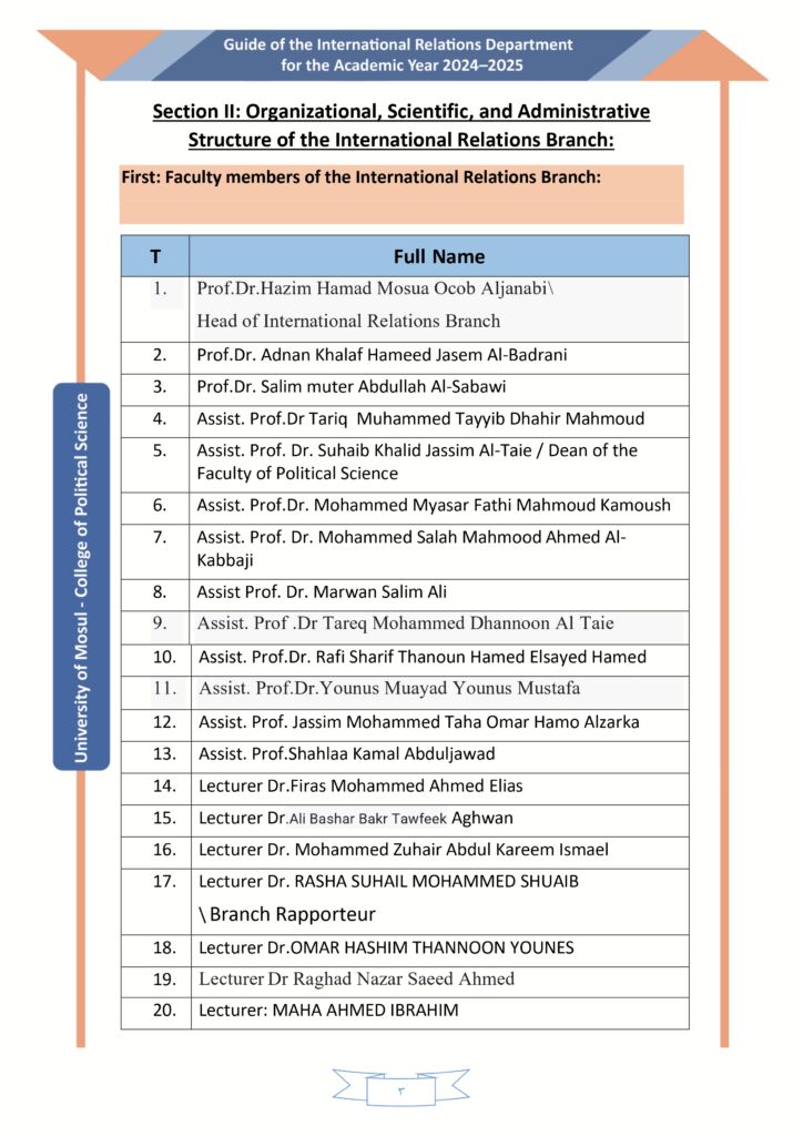 Head of the Department of International Relations, Prof. Dr. Hazem Hamad Al-Janabi