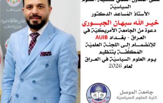 The Scientific Assistant of the College of Political Science at the University of Mosul Receives an Invitation from AUIB to Join the Scientific Committee for Organizing Political Science Day in Iraq 2026