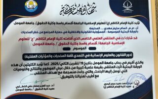 Participation of a Faculty Member from the College of Political Science, University of Mosul Assistant Lecturer Ansam Saleem Mahdi, in the Fifth Joint Scientific Forum Held by Al-Imam Al-Kadhim College (Wasit Branch) and the College of Law at the University of Mosul, on the Role of Law in Combating Drugs — and the Dean’s Office Extends Congratulations