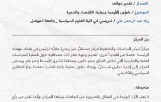 The Al-Bayan Center for Studies and Planning has published a policy paper authored by Dr. Ali Bashar Bakr, a lecturer in the Department of International Relations at the College of Political Science, University of Mosul. [Read More]