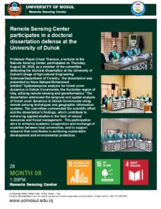 Professor Rayan Ghazi Thanoun, a lecturer at the Remote Sensing Center, participated on Thursday, August 28, 2025, as a member of the committee defending the doctoral dissertation at the University of Duhok/College of Agricultural Engineering Sciences/Department of Forestry. The dissertation was presented by Nova Bahzad Mohammed, entitled: