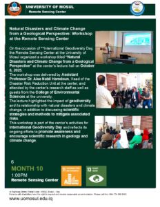 On the occasion of **International Geodiversity Day, the Remote Sensing Center at the University of Mosul organized a workshop titled “Natural Disasters and Climate Change from a Geological Perspective” at the center’s lecture hall on October 6, 2025.