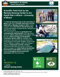 The Remote Sensing Center at the University of Mosul organized a scientific field visit to the Ain Kabrīt site on Monday, October 6, 2025, on the occasion of the International Geodiversity Day, with the participation of several faculty members and staff from the center.