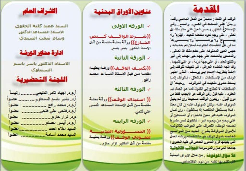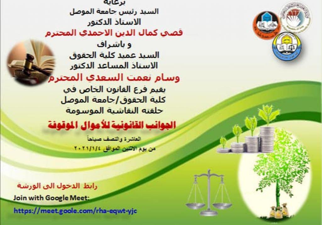 On Monday 1/4/2021, the private law branch in our college, through the zoom app, held a seminar entitled (Legal aspects of the endowment propertiesWaqf))