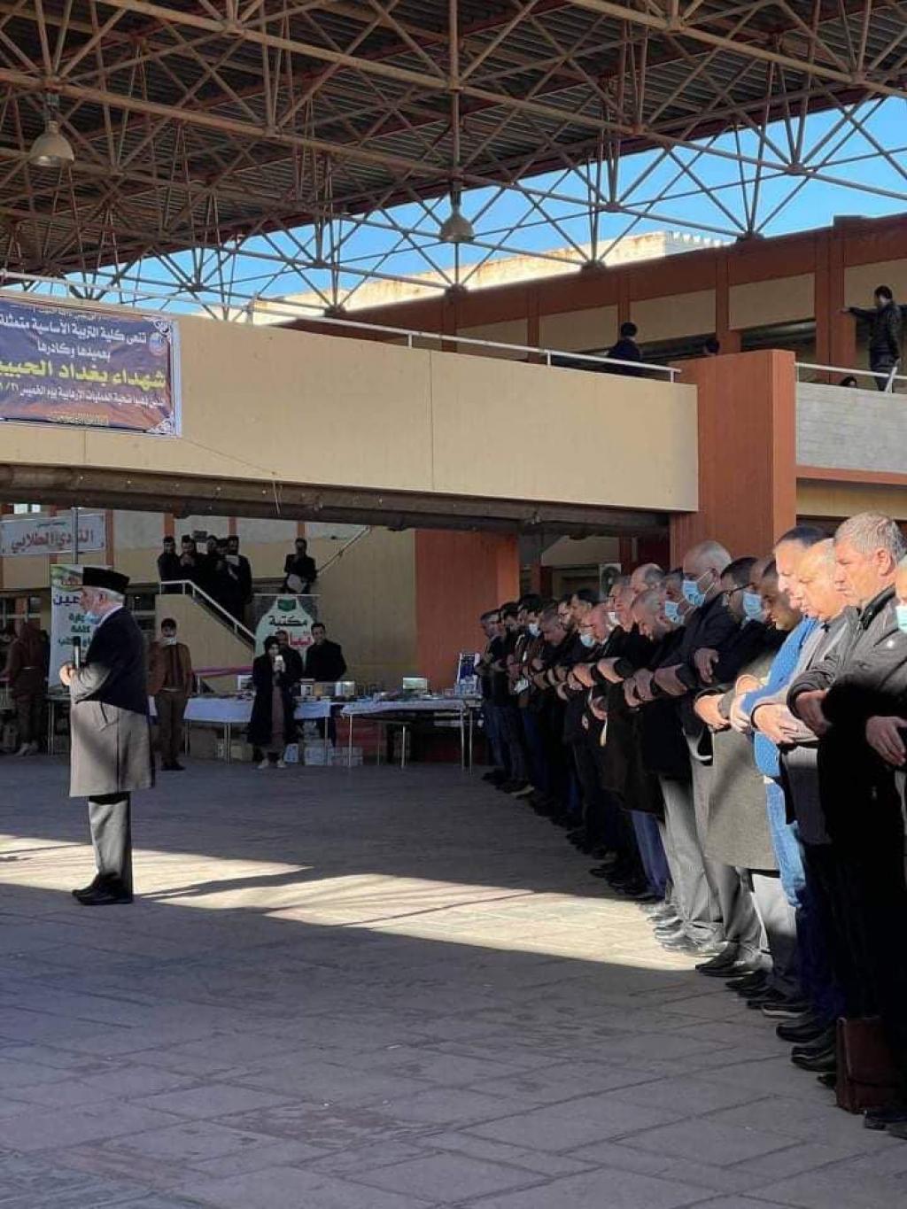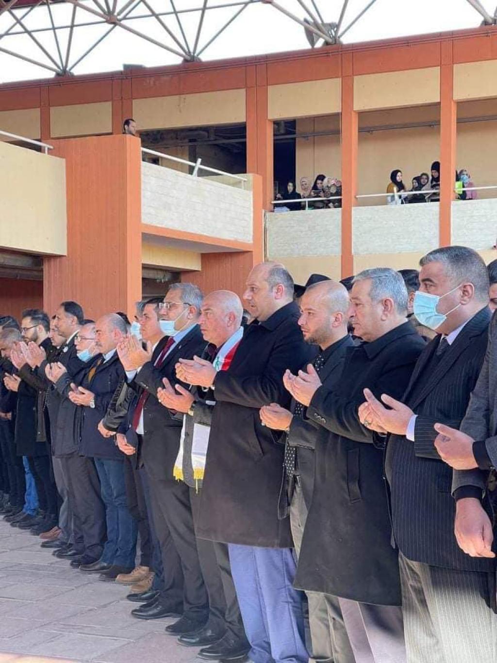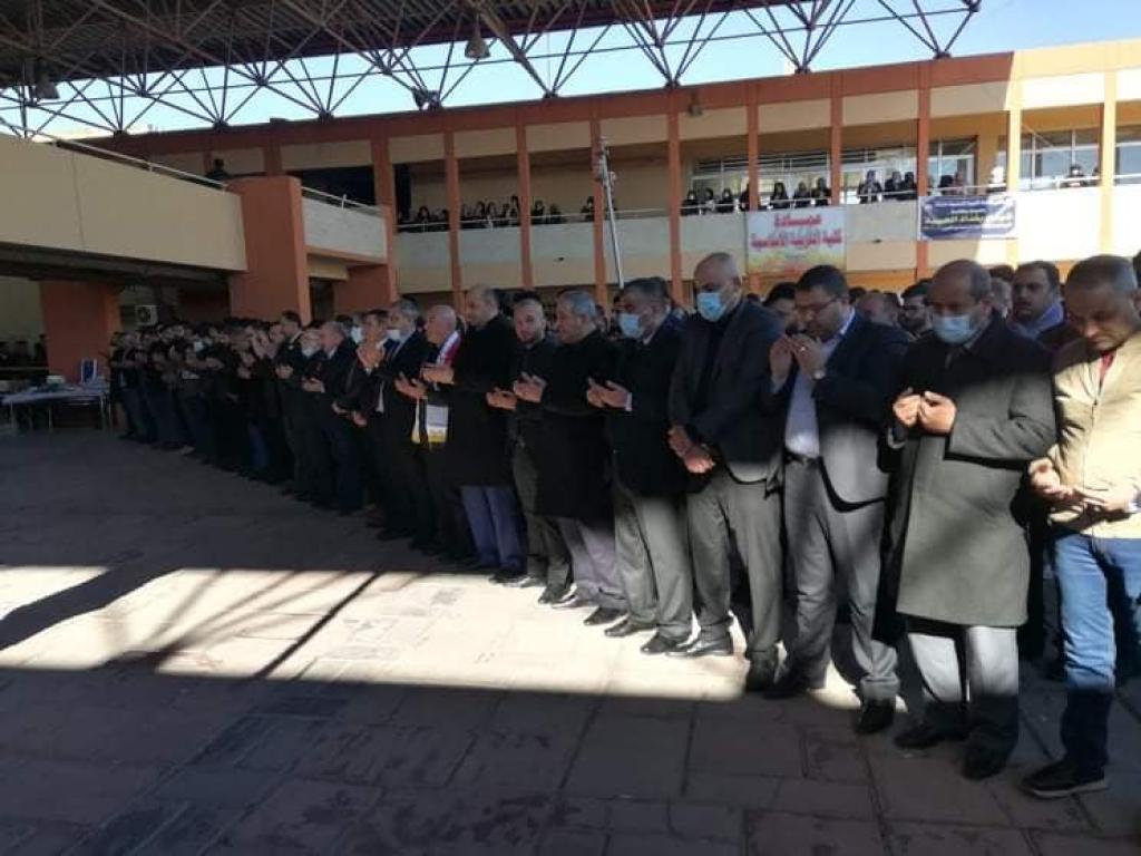 At the University of Mosul / Second Complex, on Sunday 01/24/2021, the absentee prayer was held for the souls of the martyrs of the terrorist bombing in the capital, Baghdad, and the souls of the martyrs of Iraq from the members of our heroic armed forces, our proud security services and our steadfast crowds whose pure blood flowed on the land of Iraq so that his banner embraced Anan Heaven is asking God Almighty to dwell in them in his spaciousness, and for their families, relatives and loved ones to grant patience and solace, and I belong to God and to Him we shall return