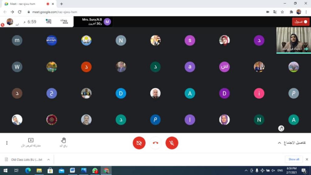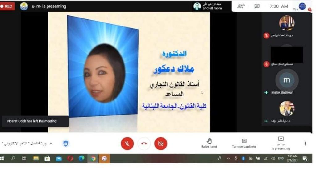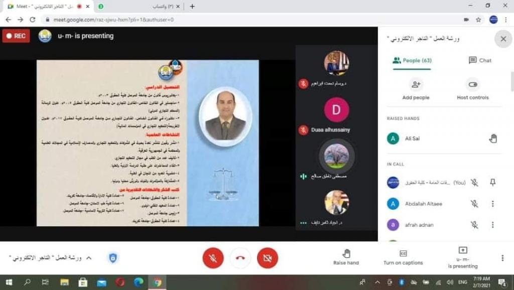 On Sunday 7/2/2021, the Private Law Branch held an electronic international workshop on the Google Meet app