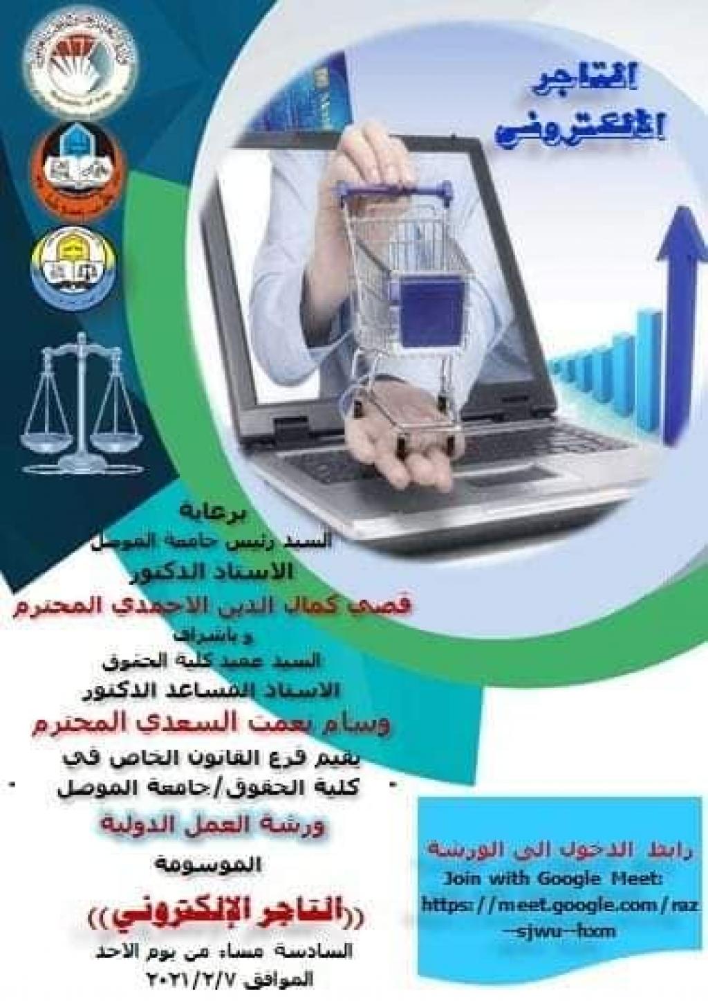 The workshop works were launched with a research paper by Dr. Mustafa NateqSaleh / Faculty of Law, University of Mosul, tagged (The obligations of the trader in light of the electronic environment / the commercial register as a model) in which he addressed the importance of electronic technologies in commercial operations, referring to the commercial register, which is an integrated electronic system that shows the business It is practiced by the merchant, which is organized by the chambers of commerce and industry, referring to the applications of some countries, then Dr. Nada Zuhair Al-Fil / College of Law of the University of Sharjah presented a research paper entitled (Unsolicited Electronic Merchant and Supply) in which she talked about electronic shopping that has become widespread at the present time and the extent of The likelihood that what was purchased would come in contravention of the required specifications in addition to the occurrence of many shoppers in the trap of fraud and fraud, then Dr. Malak Arab Dakour / Faculty of Law of the Lebanese University presented her research paper tagged (What is the conflict between electronic addresses and trademarks) in which she explained the manifestations of conflict and the principles that govern it Then Dr. ShaimaFawzi Ahmed from the Faculty of Law at the University of Mosul presented her research paper entitled (How to become a T. Electronic fees) in which I touched upon the ownership of many companies’ electronic stores that hold their goods, indicating the contracting processes that are made with the buyer, referring to the national and international legislation that regulates these purchase contracts, and then Dr.RawaYunus Al-Najjar presented her research paper tagged (The Electronic Merchant Agent) which showed In it, the mechanism for forming the electronic platform from which the shopping is made, referring to the website from which the shopping is made, explaining the mechanism that is adopted to obtain the electronic merchant license