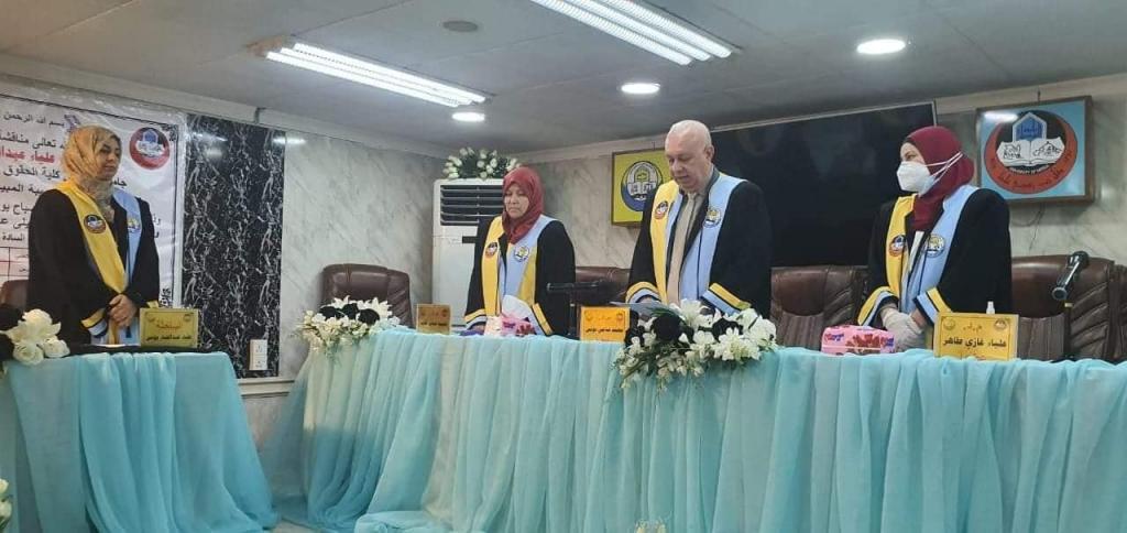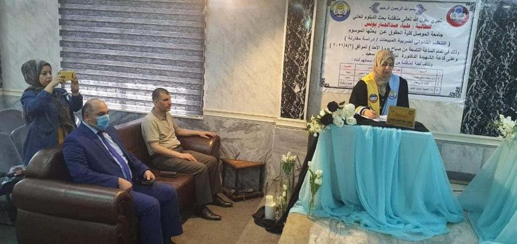 The Public Law Branch of the Faculty of Law at the University of Mosul discussed a higher diploma research on the legal regulation of sales tax on Sunday, May 2, 2021 attended by a part of it, Assistant Professor Dr. WissamNimat Ibrahim Al-Saadi, Dean of the College and Assistant Professor Dr. Kedar Abdul QadirSaleh, Head of the Public Law Branch, and a number of the faculty teaching