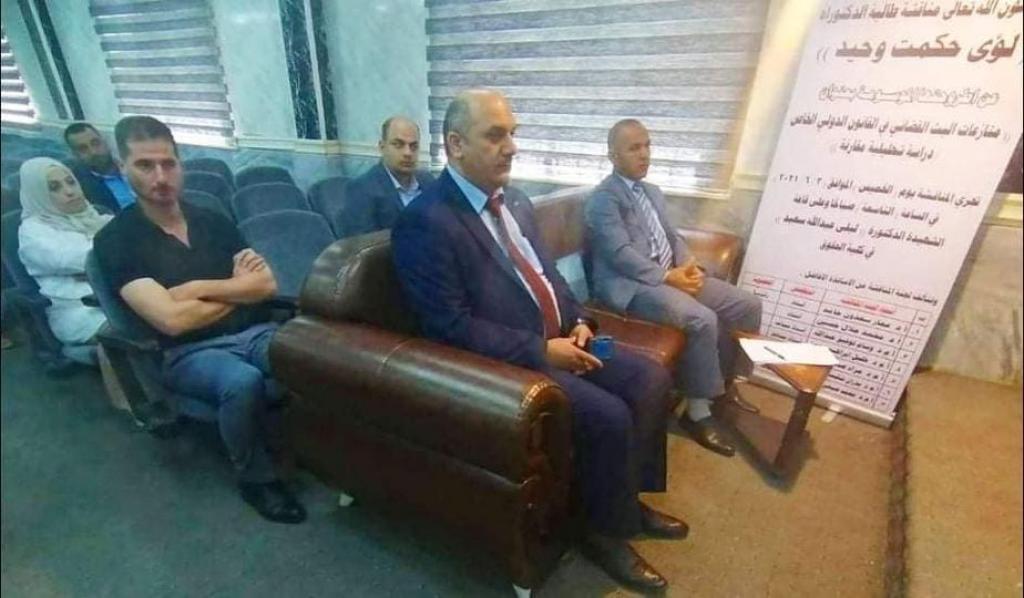 The Private Law Branch at the College of Law at the University of Mosul discussed a dissertation on satellite broadcasting disputes in private international law / a comparative analytical study on Thursday, June 3, 2021, attended by one of them, Assistant Professor Dr. college lecturers