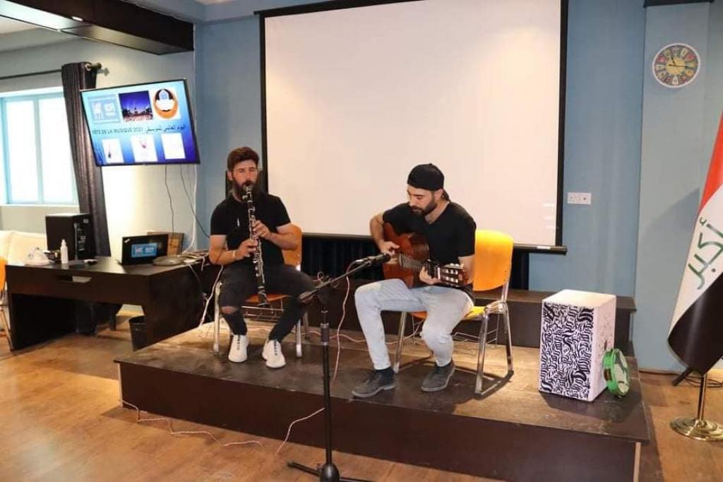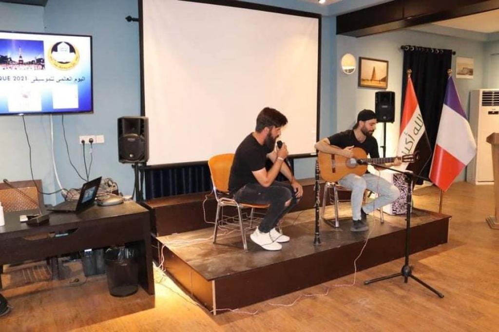 Assistant Professor Dr. WissamNeamat Ibrahim Al-Saadi, Dean of the Faculty of Law at the University of Mosul, and a number of the faculty and its affiliates participated in the celebration held on the occasion of the World Music Day on Monday, June 21, 2021, which was organized by the French-Iraqi Cultural Institute in Mosul, which is linked to the Francophone Corner Unit / Department of Missions and Relations The Cultural Festival at the Presidency of the University of Mosul and in cooperation with young artists from the city of Mosul. The celebration included a number of musical and lyrical performances