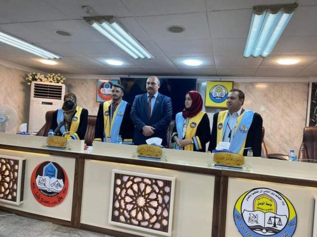 Part of it was attended by Assistant Professor Dr. Wissam Neamat Ibrahim Al-Saadi, Dean of the College and Assistant Professor Dr. Ajyad Thamer Nayef, Head of the Private Law Branch, and a number of members of the College Council and its teachers