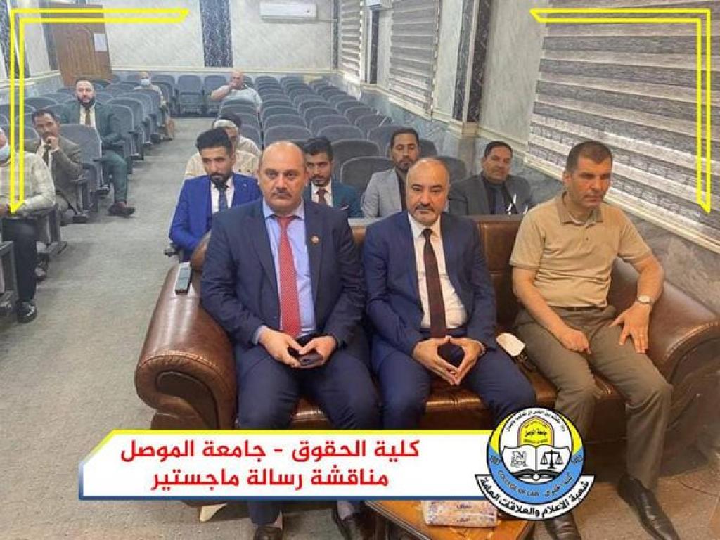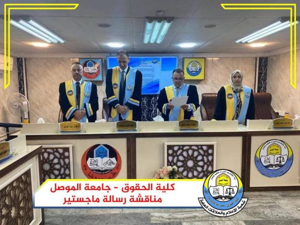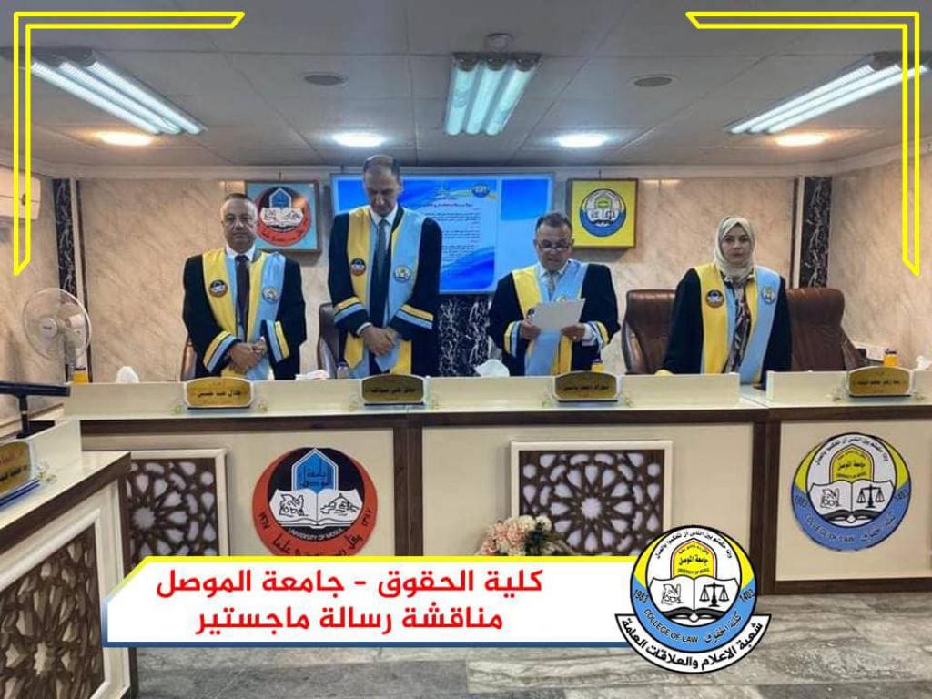 On Wednesday, August 18, 2021, the Public Law Branch at the College of Law at the University of Mosul discussed a master’s thesis on criminal protection for the website. Part of it was attended by Assistant Professor Dr. Wissam Neamat Ibrahim Al-Saadi, Dean of the College, and Assistant Professor Dr. Qidar Abdel Qader Saleh, Head of the Public Law Branch and a number of members of the College Council and its teachers