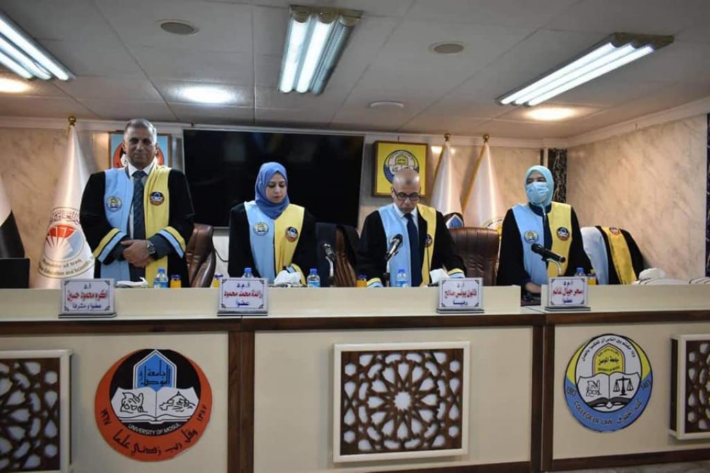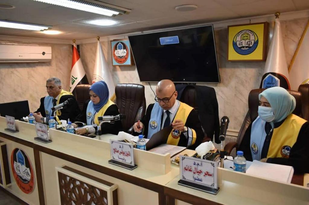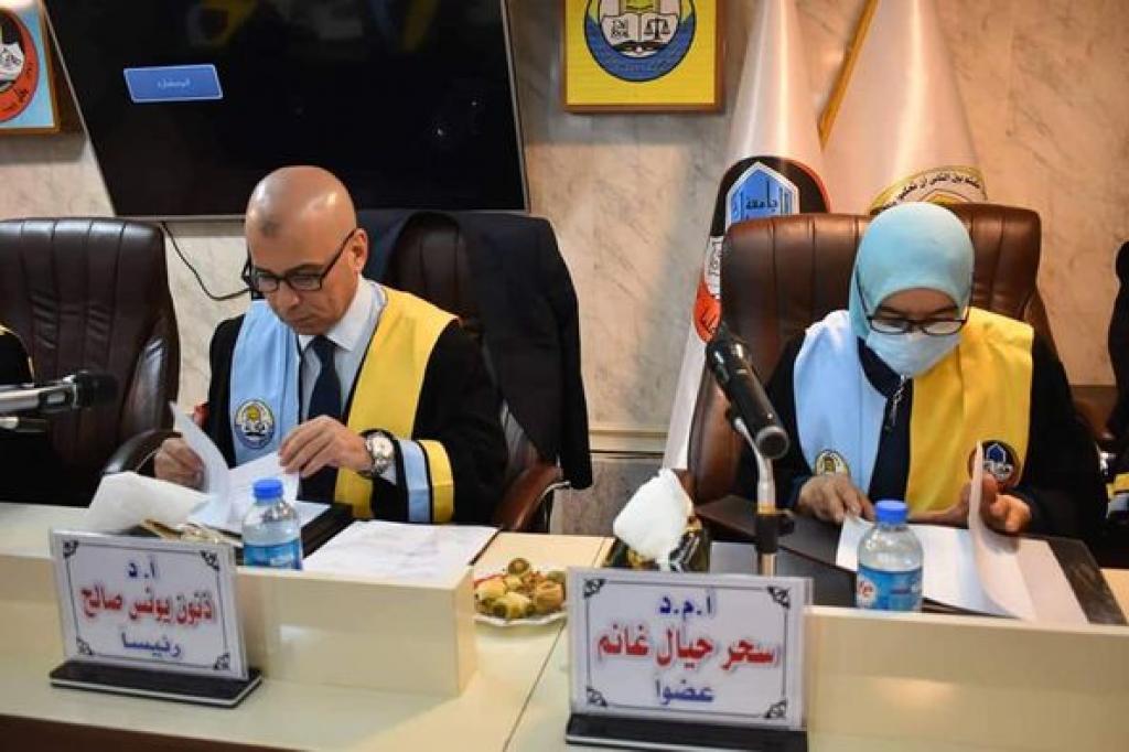 The discussion committee was chaired by Prof. Dr. Thanoun Younis Saleh, with the membership of Assistant Professor Dr. Raeda Muhammad Mahmoud, Assistant Professor Dr. Sahar Hayal Ghanem, and the membership and supervision of Prof. Akram Mahmoud Hussein.