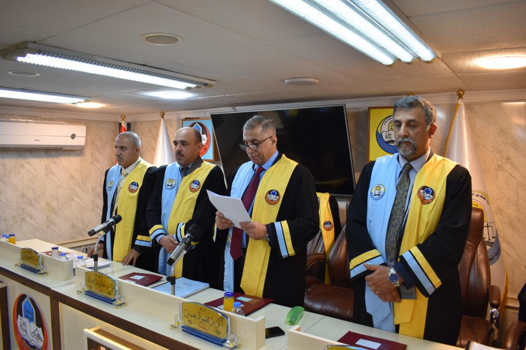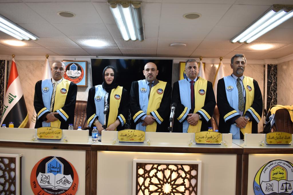 The discussion committee was chaired by Prof. Dr. Akram Mahmoud Hussein, with the membership of Assistant Professor Dr. Muhammad Siddiq Muhammad, and Assistant Professor Dr. Nizar Hazem Muhammad, and the membership and supervision of Assistant Professor Habib Idris Issa.