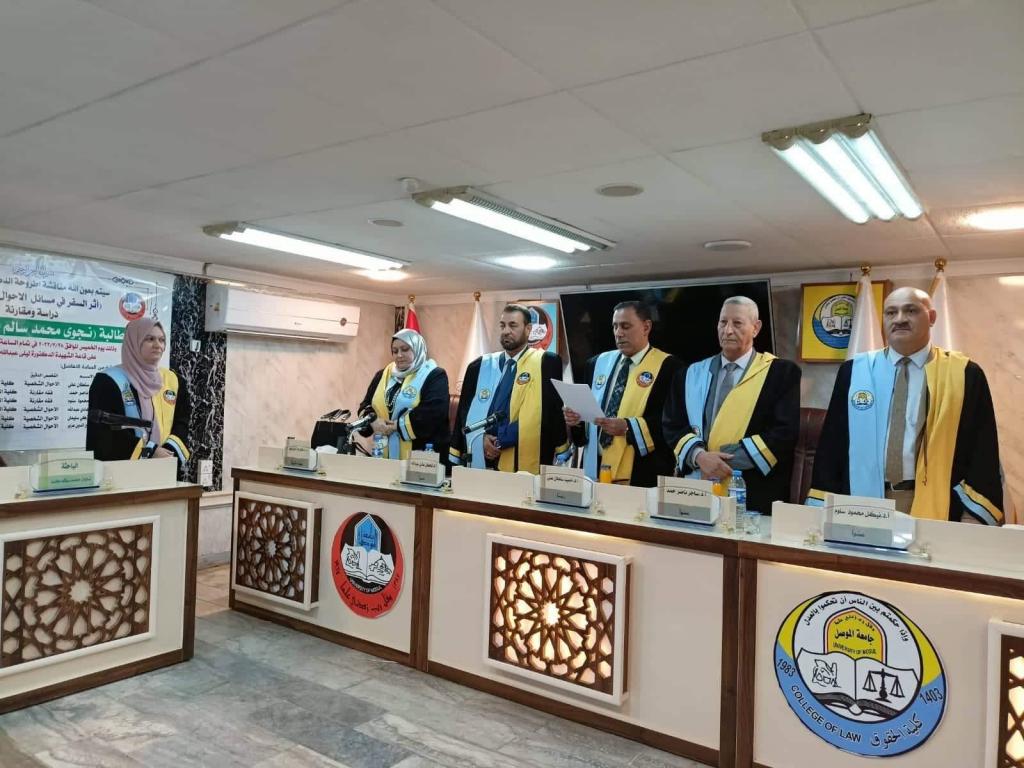 On Thursday, July 28, 2022, the Private Law Branch of the College of Law at the University of Mosul discussed a doctoral thesis on the impact of travel on personal status issues / a comparative study, part of which was attended by Assistant Professor Dr.