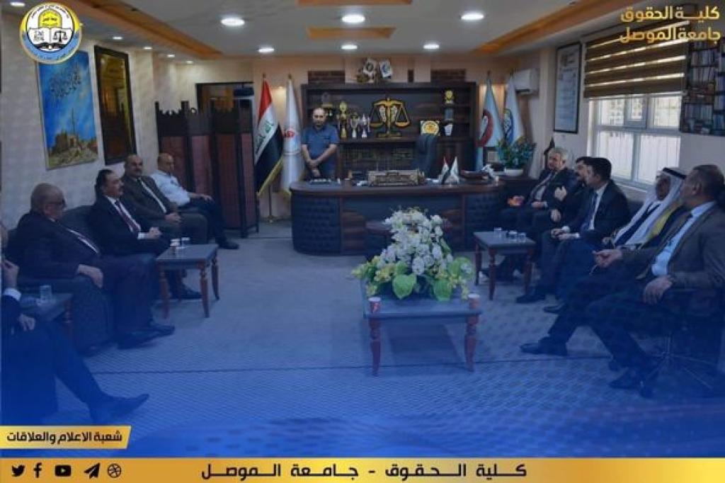 Assistant Professor Dr. Wissam Neamat Ibrahim Al-Saadi, Dean of the College of Law at the University of Mosul, and members of the College Council received on Tuesday, September 6, 2022, Prof. Dr. Qusay Kamal Al-Din Al-Ahmadi, President of Mosul University, who attended the discussion of one of the graduate students in our college. On the other hand, the President of the University praised the role of The College of Law aims to raise the scientific, research and academic level, in addition to community interaction by promoting various community activities that contribute to community awareness of individual and societal rights and duties approved by various legislations, in addition to the distinguished role of the college’s cadres in spreading the legal culture by providing many researches, studies and various articles in the various branches of law that Concerning issues and topics that are at the heart of the life of the individual and society.