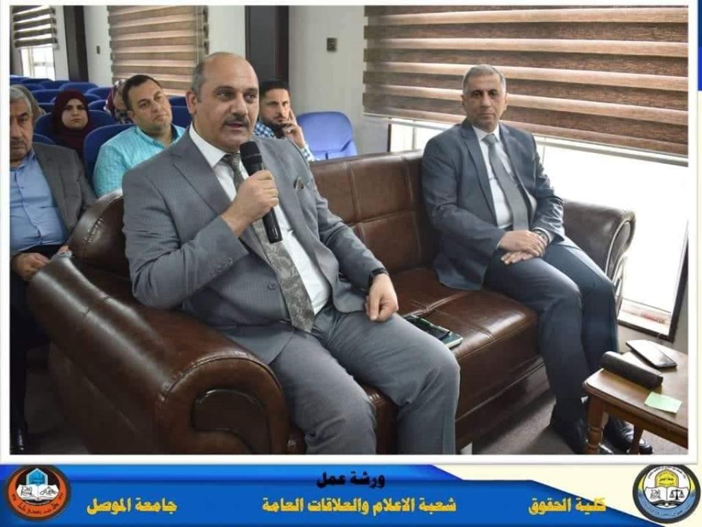 Under the patronage of Prof. Dr. Qusay Kamal Al-Din Al-Ahmadi, President of the University of Mosul, and with the follow-up and presence of Assistant Professor Dr. Wissam Nemat Ibrahim Al-Saadi, Dean of the College and members of the College Council, the Public Law Branch in our college held on Tuesday, October 18, 2022, a workshop tagged with the method of administrative correspondence, which was addressed by Dr. Hassan Talal Younis and Dr. Ali Muhammad Reda accepted a statement of the concept of administrative letters and correspondences, their divisions, their impact, and the conditions for writing them, with an explanation of the stages of writing an administrative letter. And the method of confidential correspondence with addressing the linguistic errors in the official books. The workshop witnessed a remarkable presence by administrators and academics, in addition to a number of scientific and administrative staff of the college. on her .