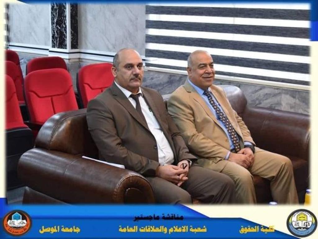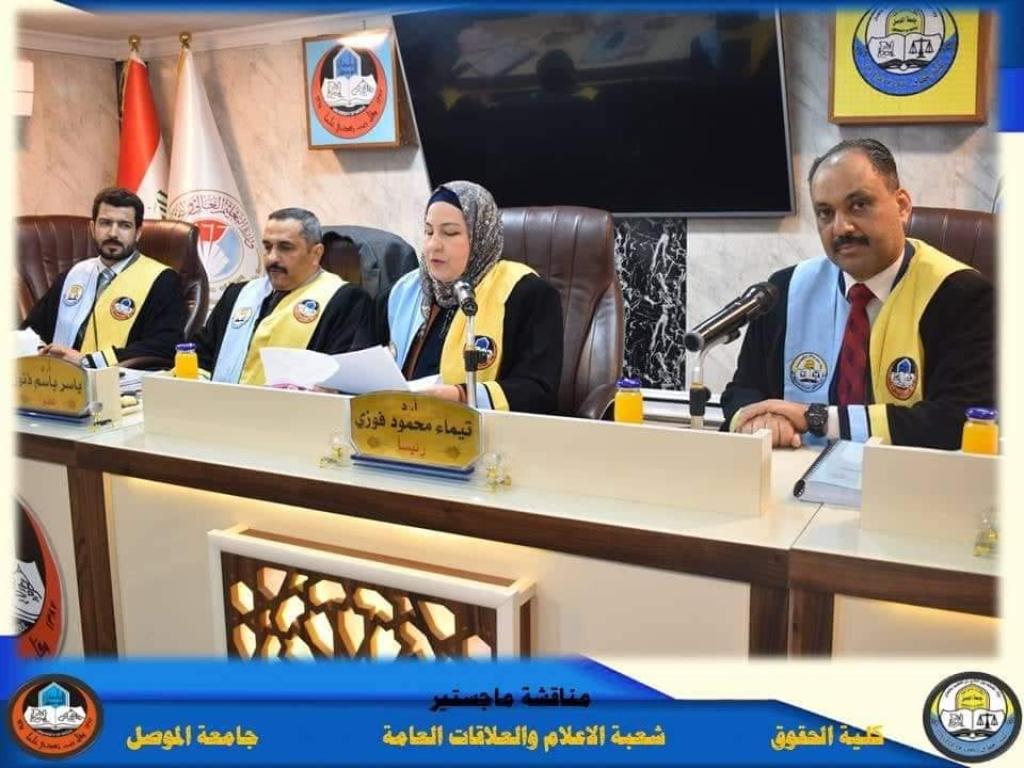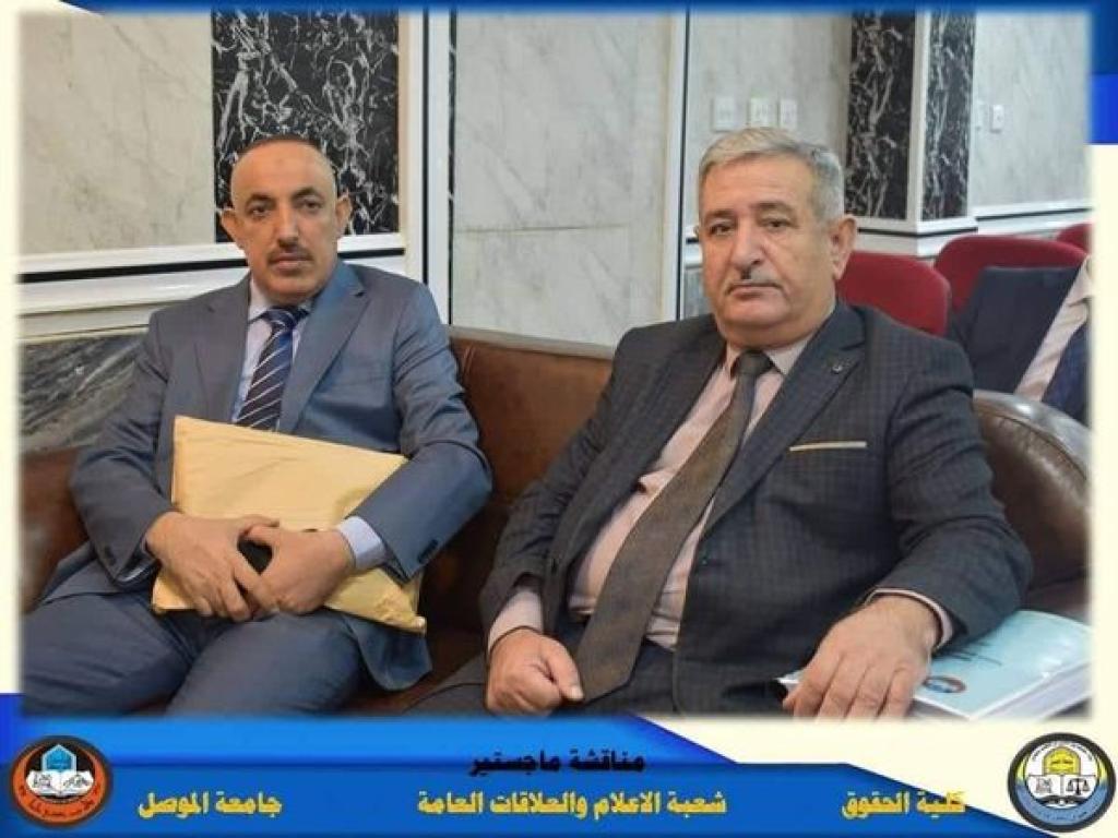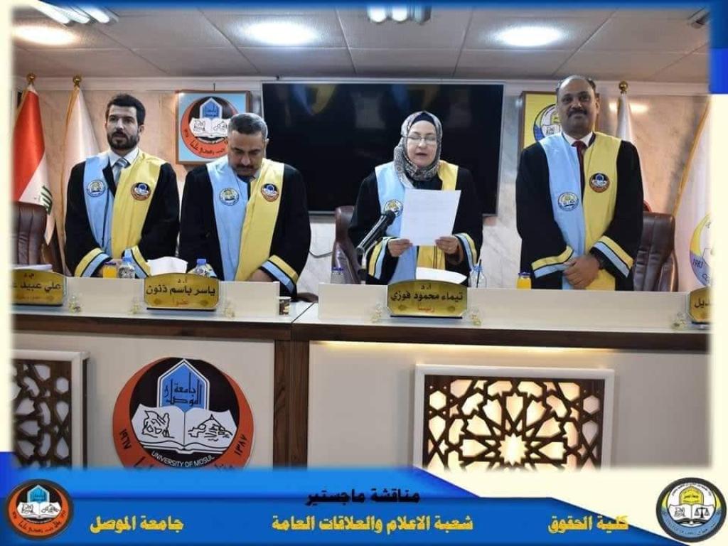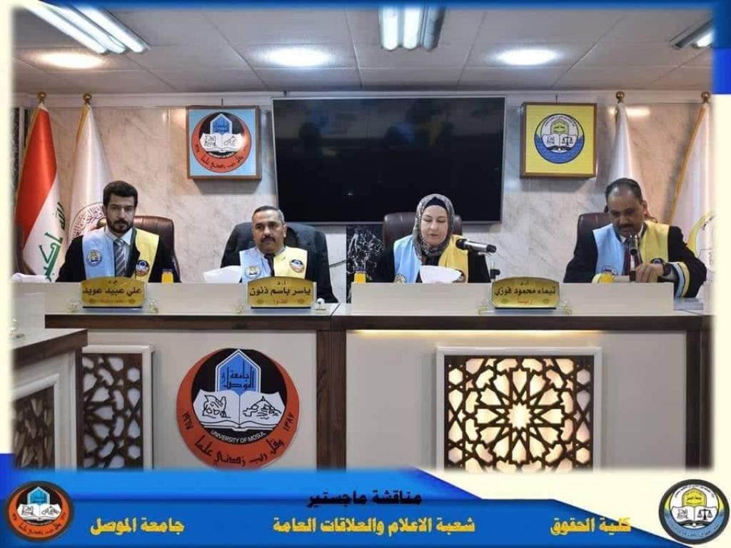 The discussion committee was chaired by Prof. Dr. Taima Mahmoud Fawzy, the membership of Prof. Dr. Asaad Fadel Mandeel, Prof. Dr. Yasser Basem Thanoun, and the membership and supervision of the teacher, Dr. Ali Obaid Owaid.