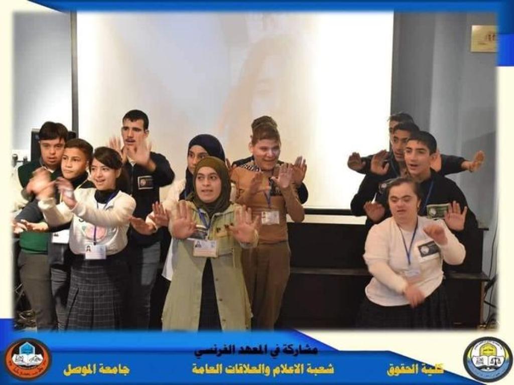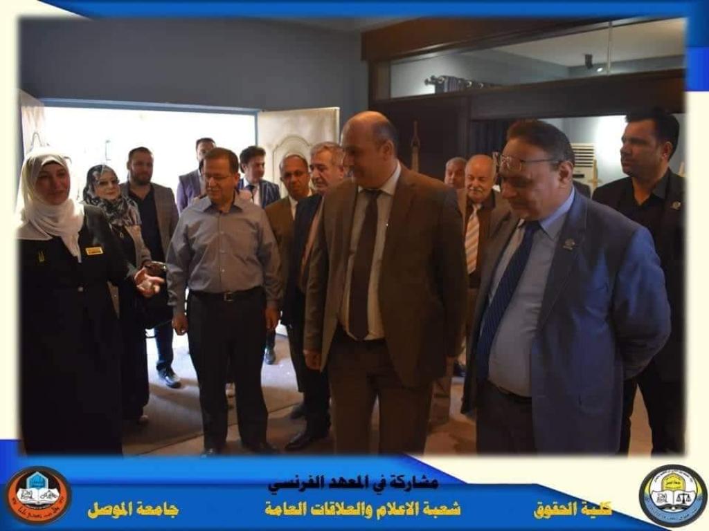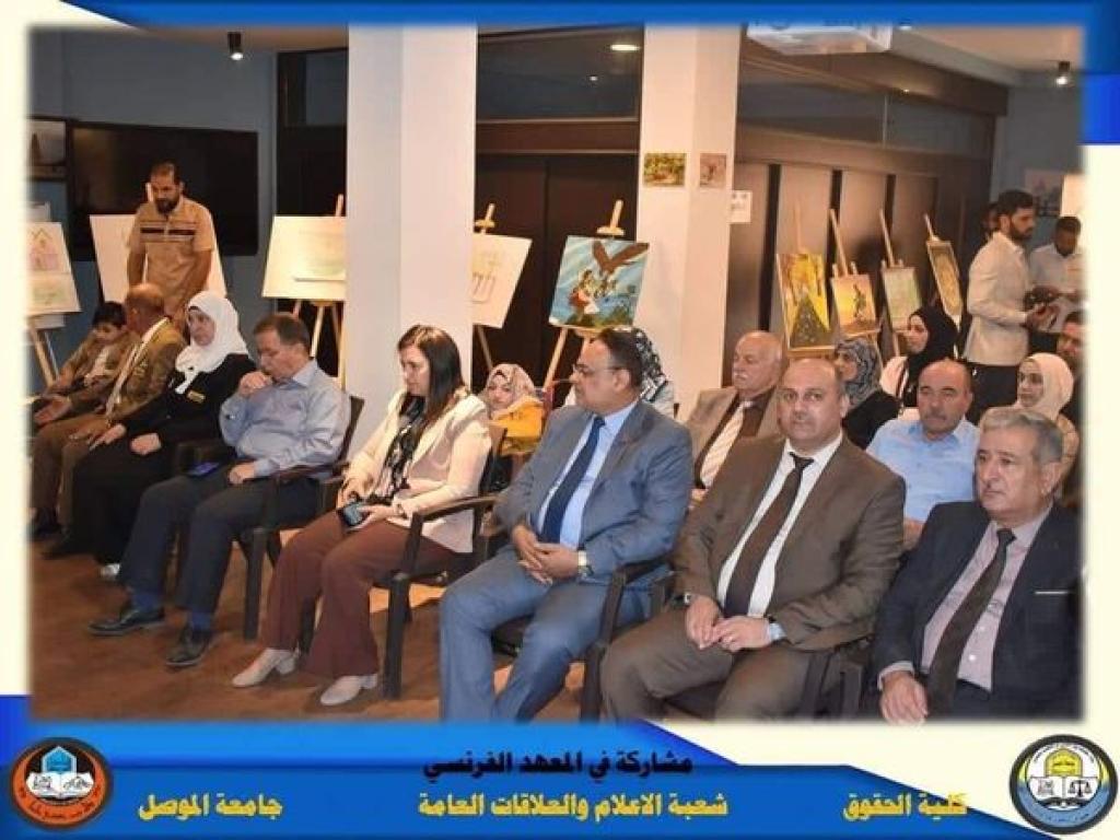 Assistant Professor Dr. Wissam Nemat Ibrahim Al-Saadi, Dean of the Faculty of Law at the University of Mosul, accompanied by Prof. Khalaf Ramadan Muhammad, Associate Dean for Administrative and Financial Affairs, visited on Monday, November 7, 2022 the French-Iraqi Cultural Institute in Mosul, to attend an exhibition for children (Happy Childhood Institute) for people with special needs. Which was entitled (No Disability with Hope and Will), where the exhibition witnessed the display of a group of artistic paintings produced by people with special needs that expressed the human will to overcome disability and interact With society and considering the disabled individual as an active element that has a distinguished role in community life, and our college’s participation and attendance at this exhibition comes within its quest for community interaction with various segments and groups, given that each of them has its role and rights as approved by international charters and instruments, in addition to constitutions and national legislation.